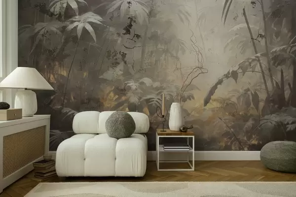 zidne murale Oslikana džungla iza grunge betonskog zida w04833