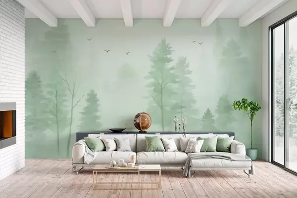 Zidne murale Zračna šuma u akvarelu u zelenim tonovima br. w04872v1