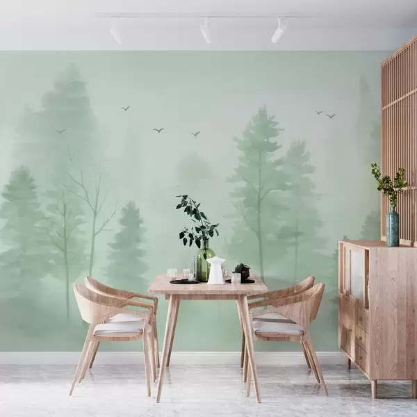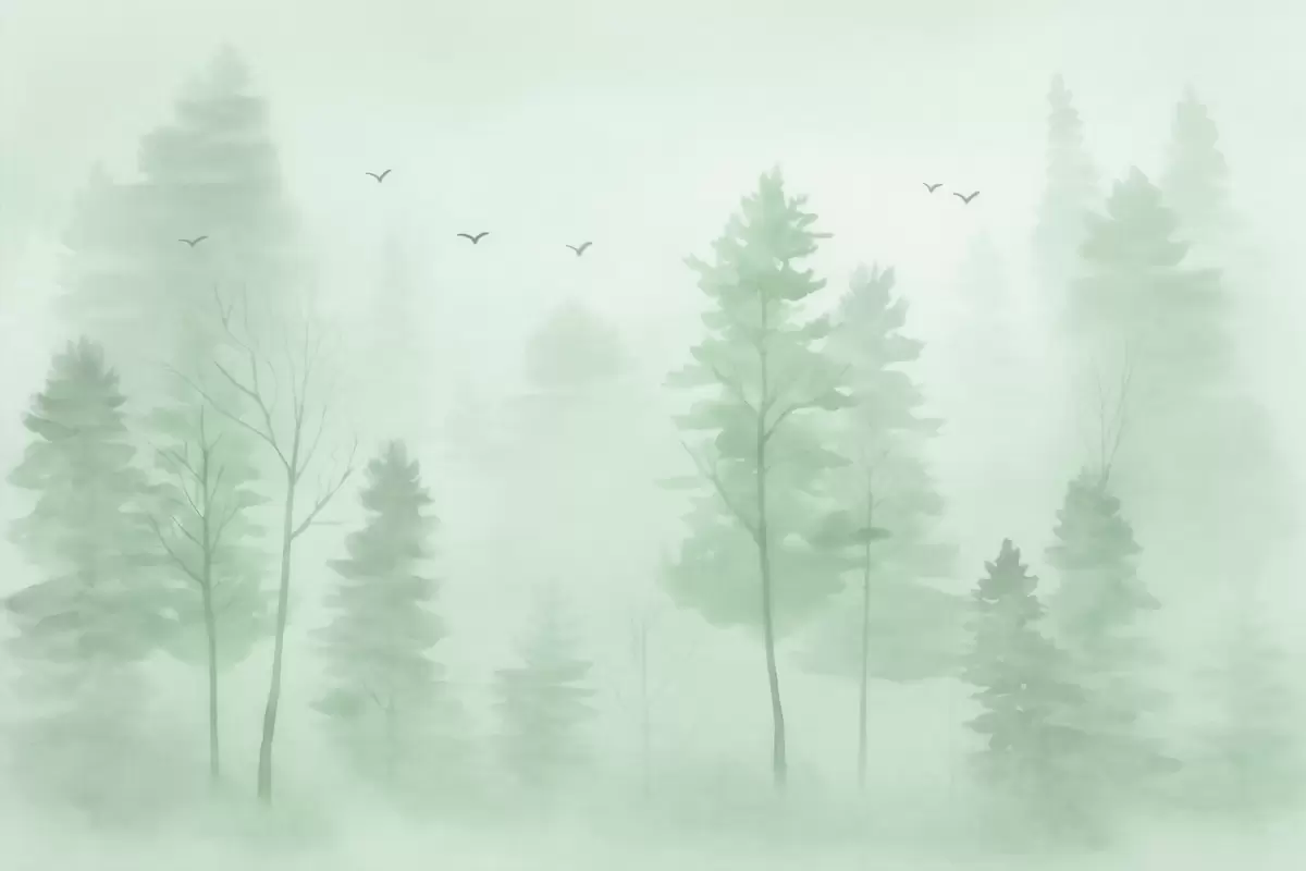 Zidne murale Zračna šuma u akvarelu u zelenim tonovima br. w04872v1