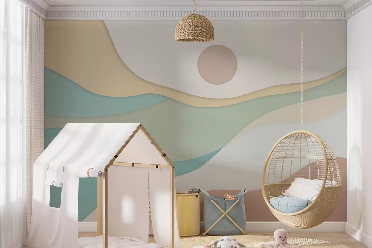 Zidne murale Minimalistička apstrakcija s mekim, valovitim oblicima koji podsjećaju na tekuće krajolike i dine. br. w04874