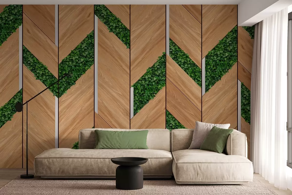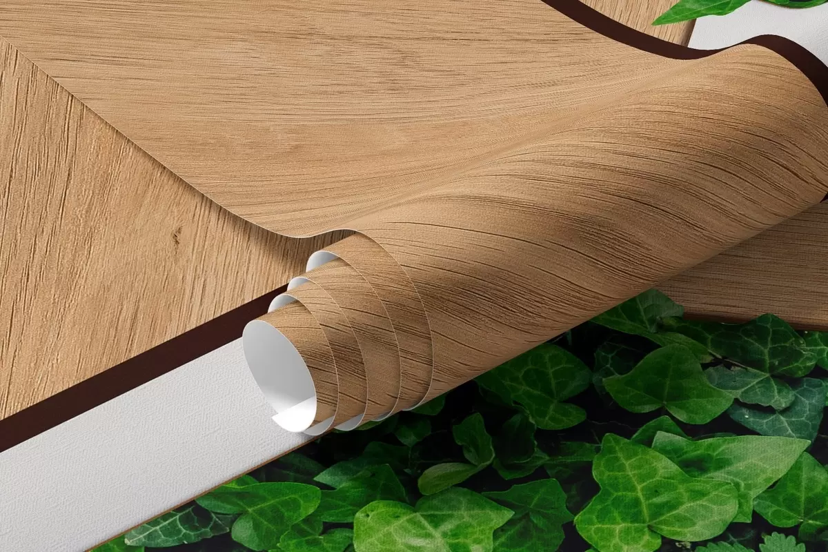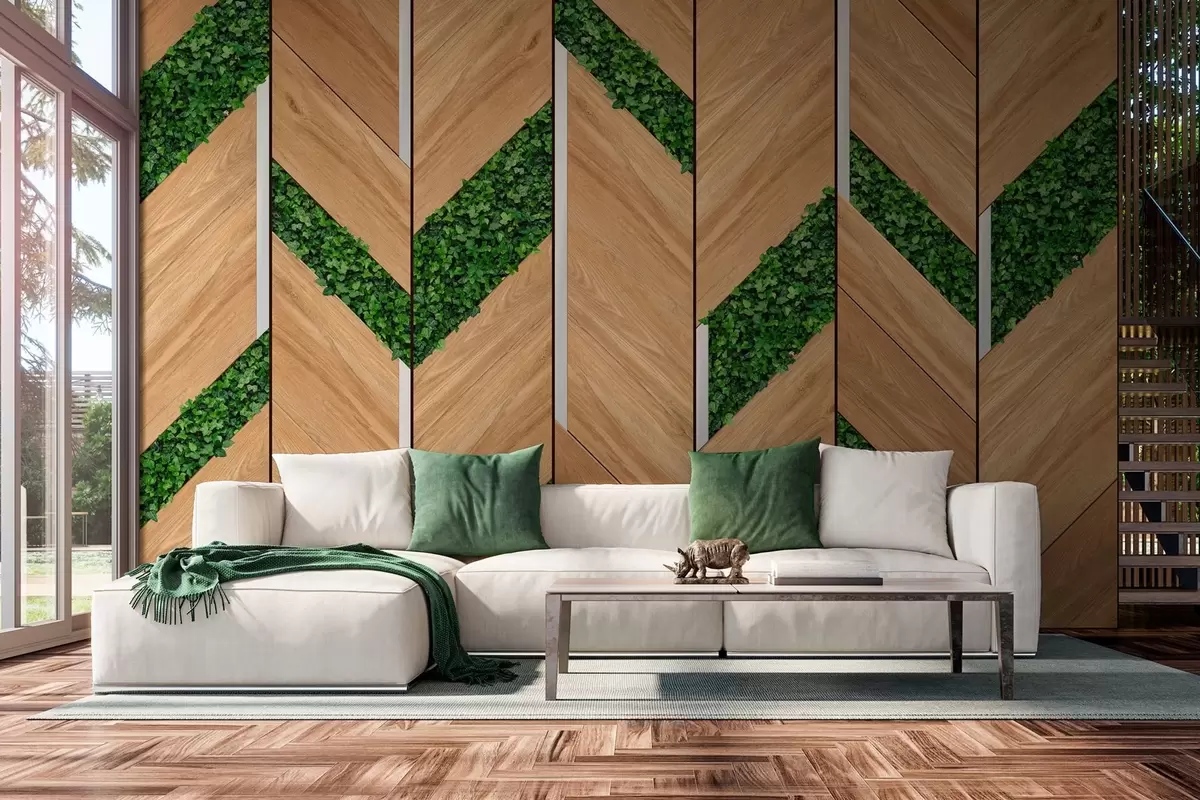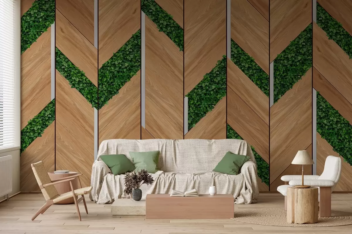 Zidne murale imitacija svijetlih drvenih panela s biljnim umetcima br. w04875