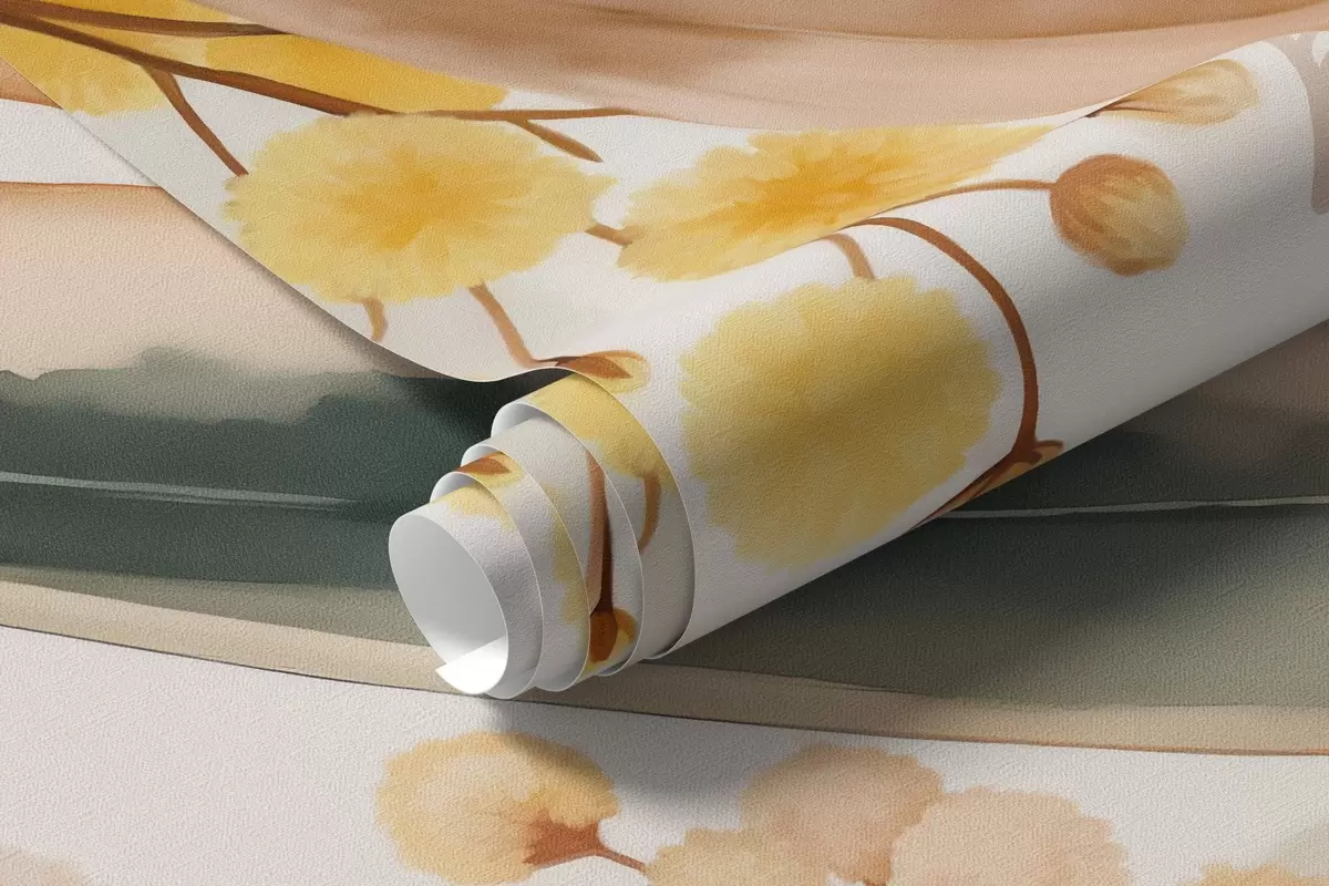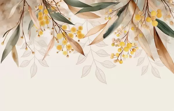 Zidne murale Cvijeće i lišće mimoze padaju odozgo u akvarelnom stilu br. w04880