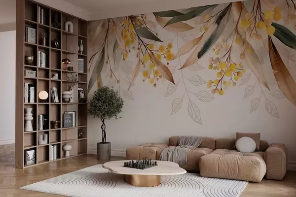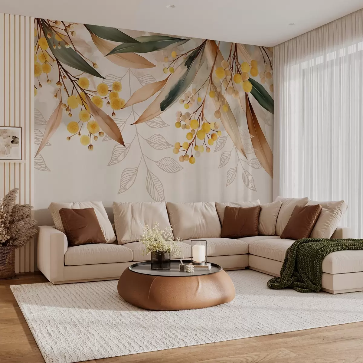 Zidne murale Cvijeće i lišće mimoze padaju odozgo u akvarelnom stilu br. w04880