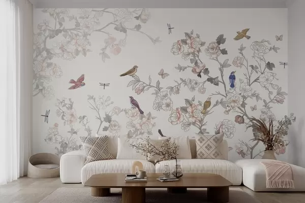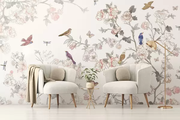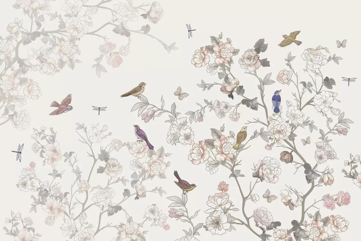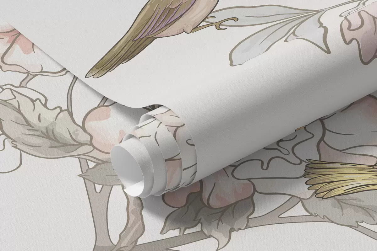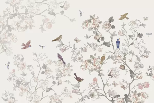 Zidne murale Ptice blizu grana s cvijećem br. w04939