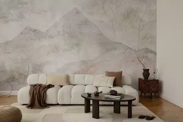 Zidne murale Meke pastelne planine i drveće u laganoj magli br. w04954