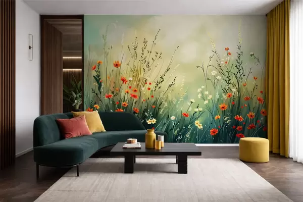 Zidne murale Livadsko cvijeće i trave u nježnom slikarskom stilu br. w05015