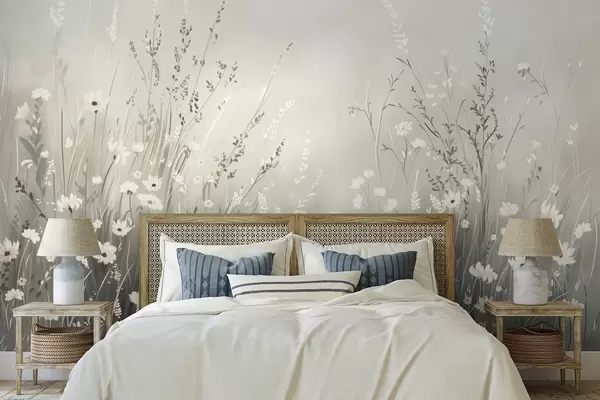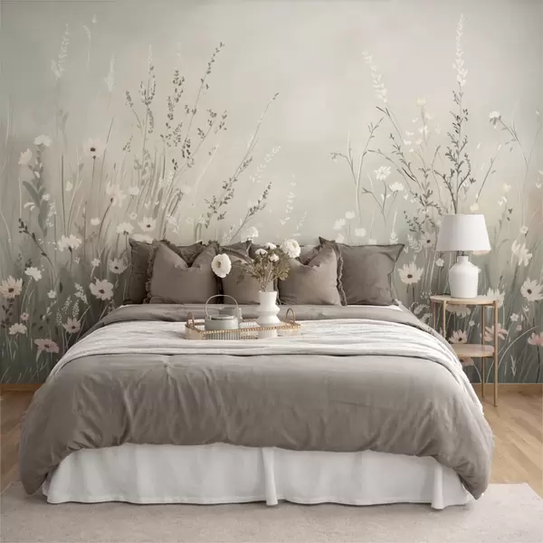 Zidne murale Meki livadni prizor s bijelim cvijećem i nježnim travama br. w05015v1