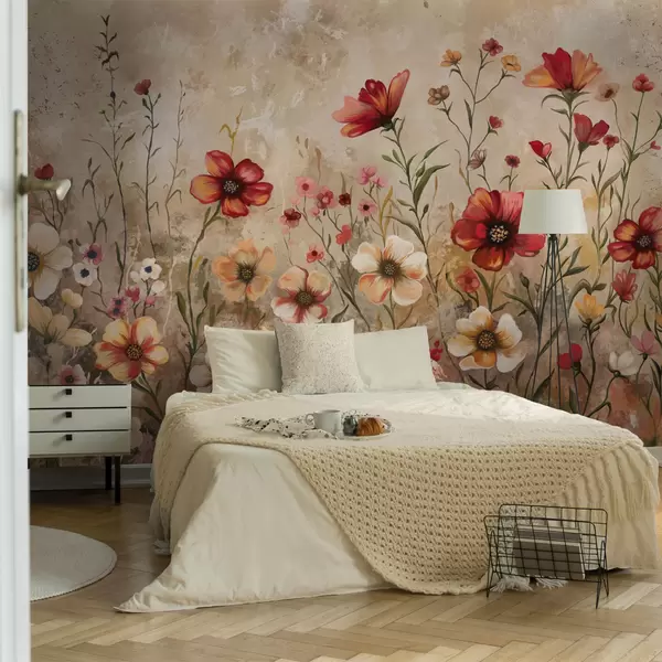 Zidne murale Cvjetna kompozicija s teksturiranom pozadinom u toplim tonovima br. w05016