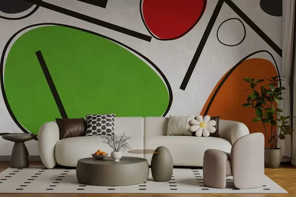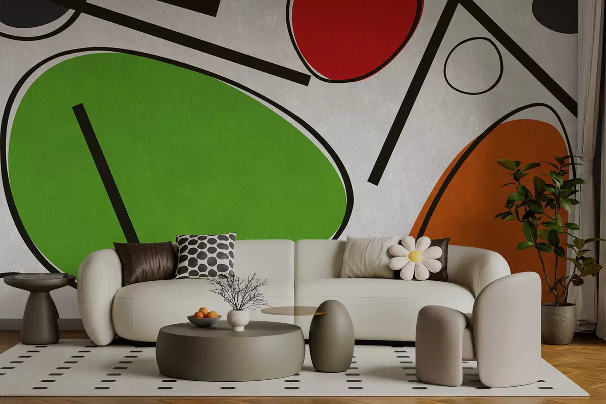 Zidne murale Apstraktni geometrijski oblici s linijama i podebljanim obojenim područjima br. w05017v1