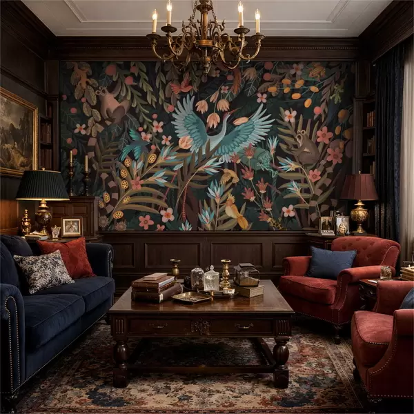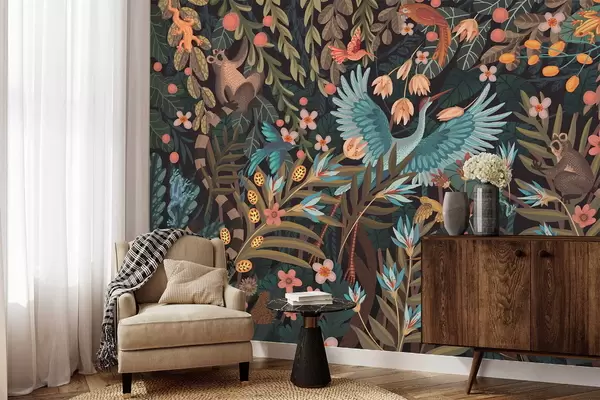 Zidne murale Fantazijski prizor s pticama i životinjama među biljkama br. w05024
