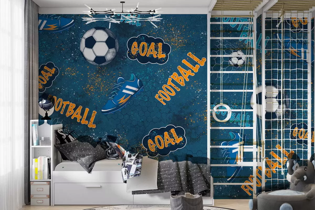 Zidne murale Dječji uzorak s loptama, cipelama i sportskim riječima br. w05037