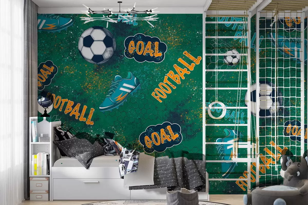 Zidne murale Uzorak za dječji nogomet u zelenim tonovima br. w05037v1