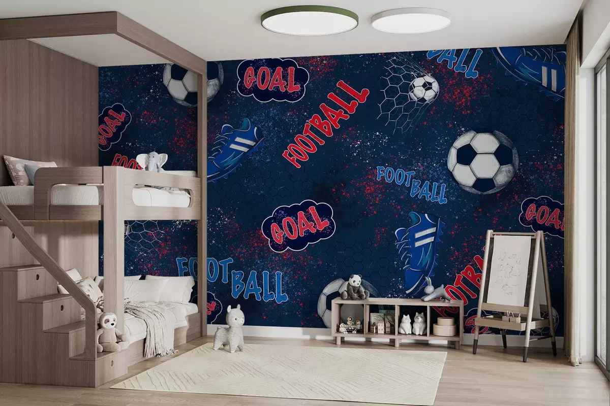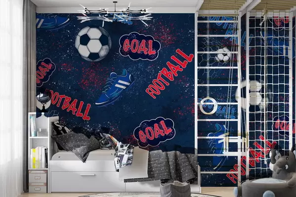 Zidne murale Ponavljajući uzorak s loptama, kopačkama i tekstualnim elementima br. w05037v2