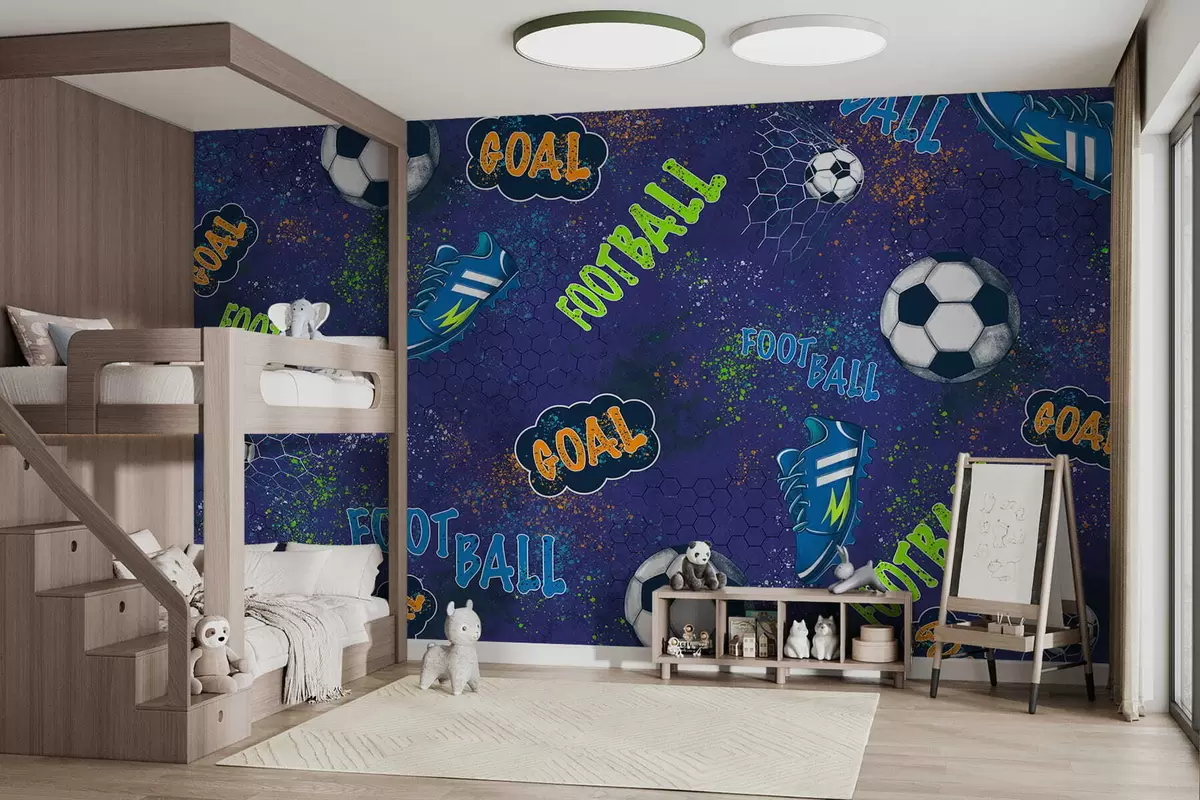 Zidne murale Uzorak za dječji nogomet u tamnoplavim tonovima br. w05037v3