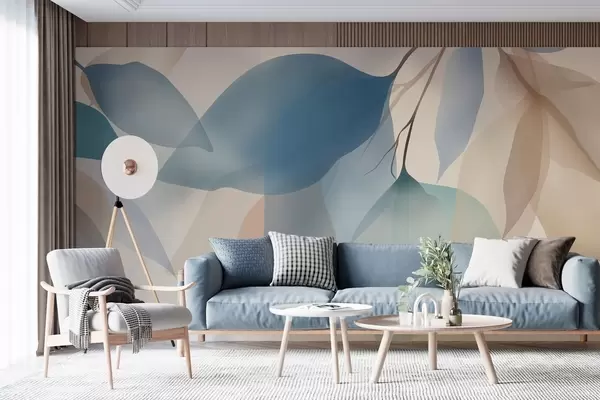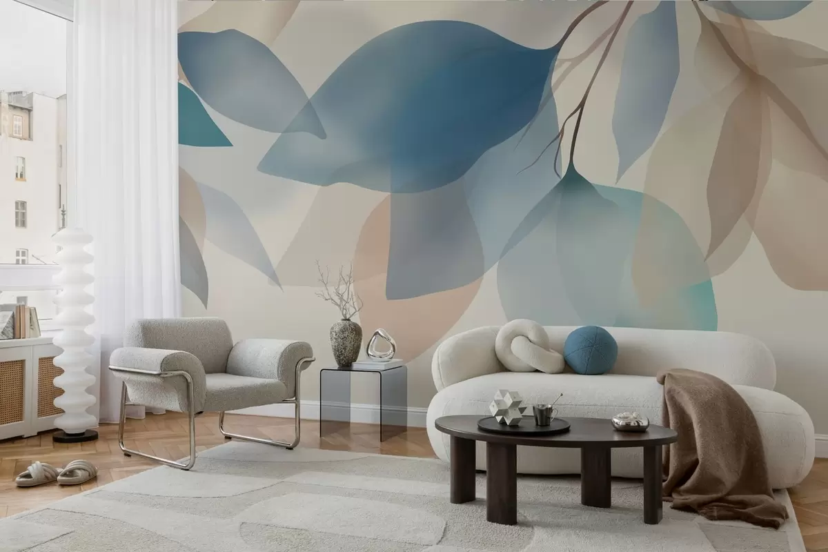 Zidne murale elegantni poluprozirni listovi u nijansama plave i bež br. w05060