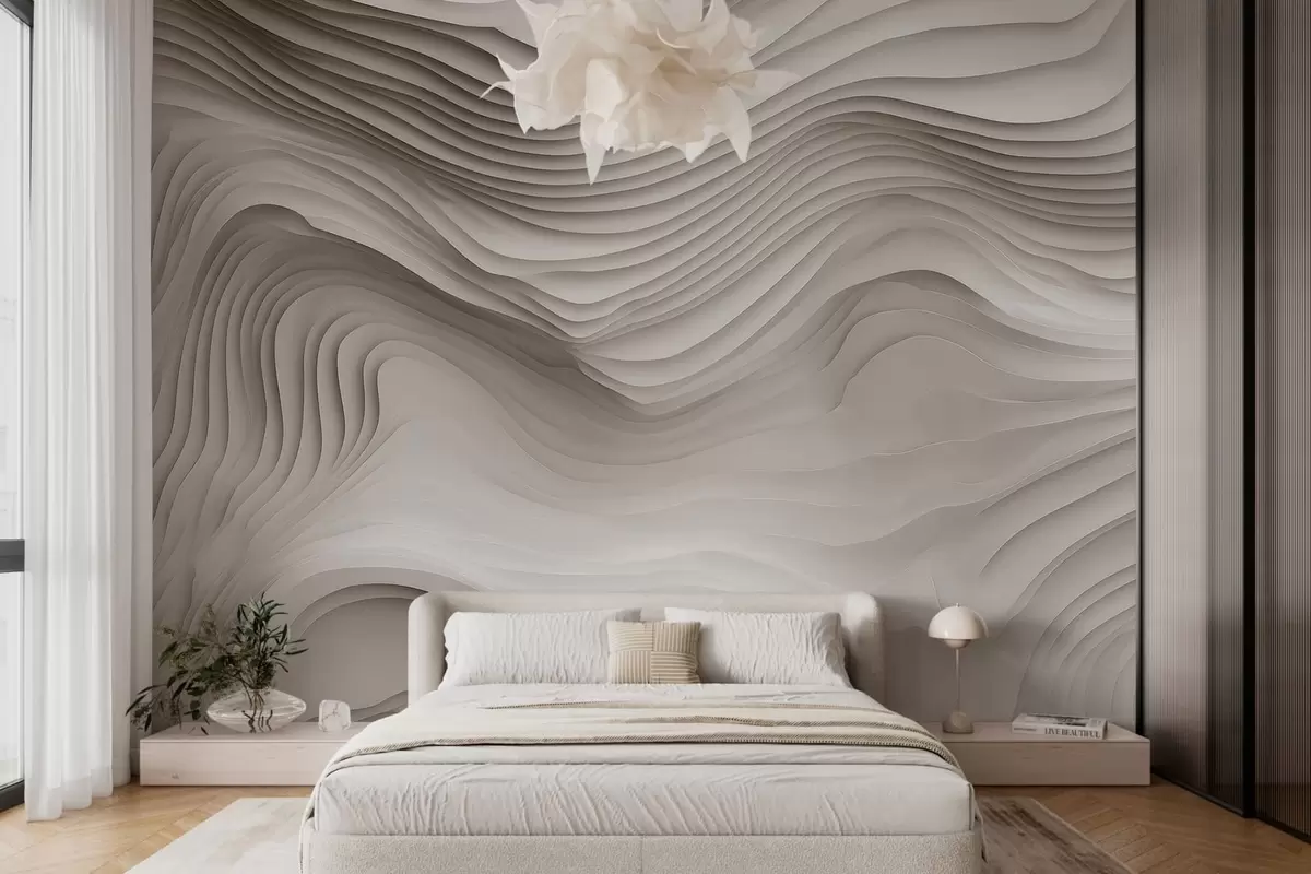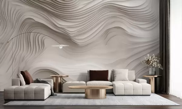 Zidne murale imitacija voluminoznih stepenastih reljefa u bež tonovima br. w05061v1
