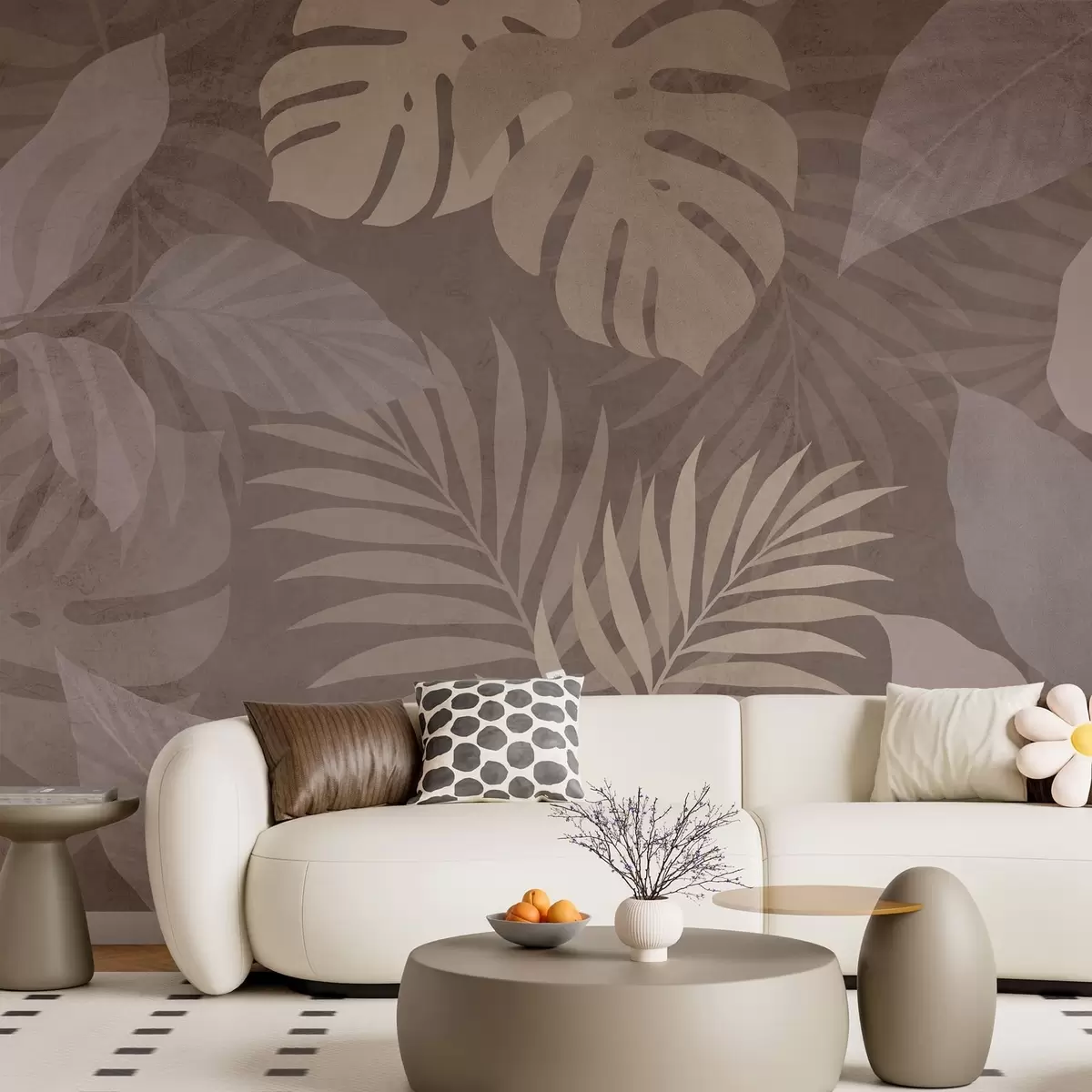 Zidne murale teksturirano tropsko lišće na čokoladnoj pozadini br. w05063v2