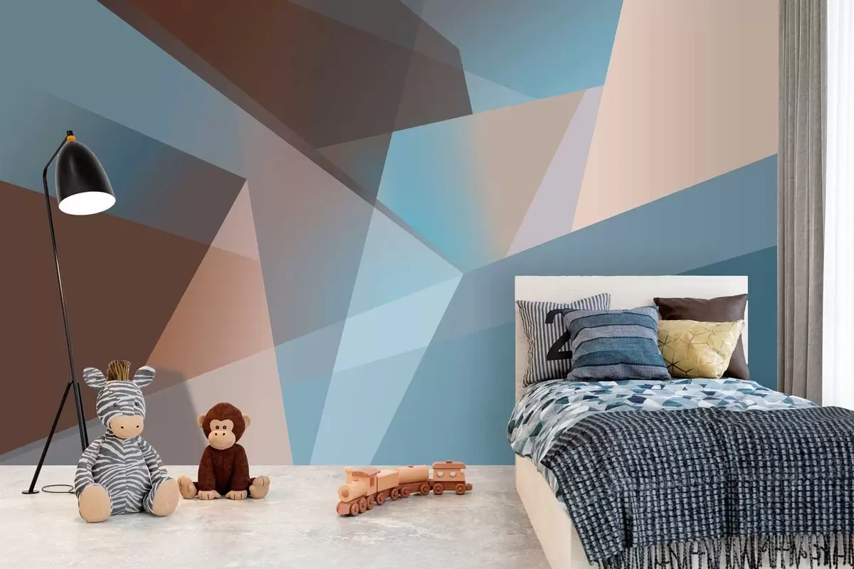 Zidne murale apstraktna geometrija u plavim i smeđim tonovima br. w05064