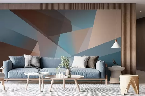 Zidne murale apstraktna geometrija u plavim i smeđim tonovima br. w05064