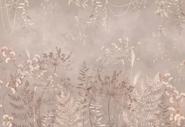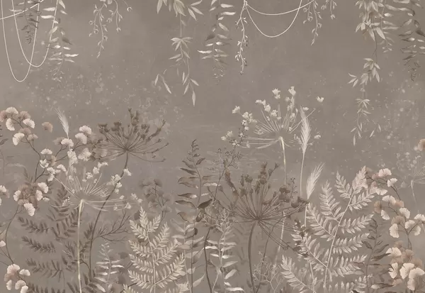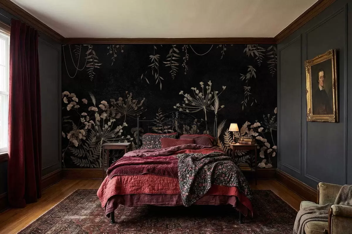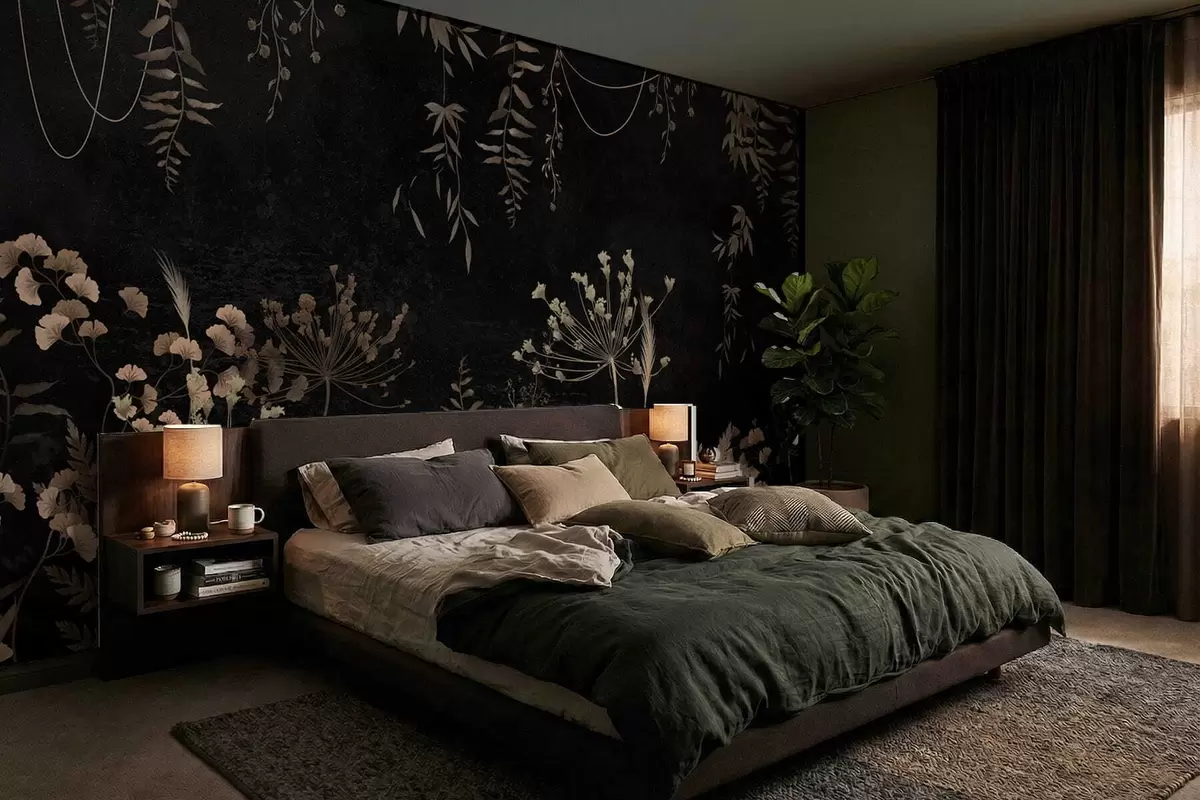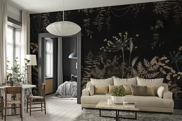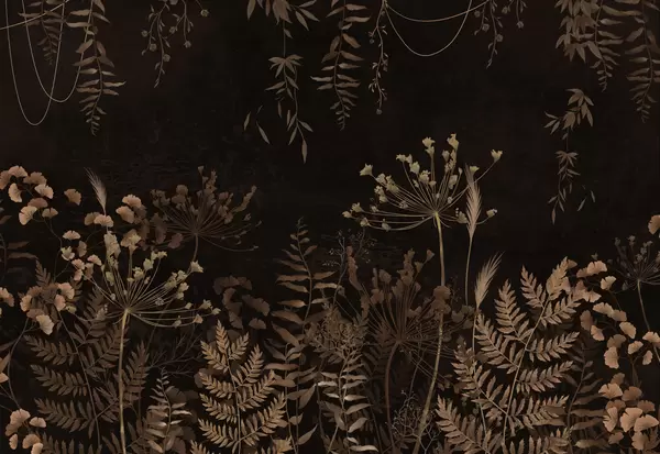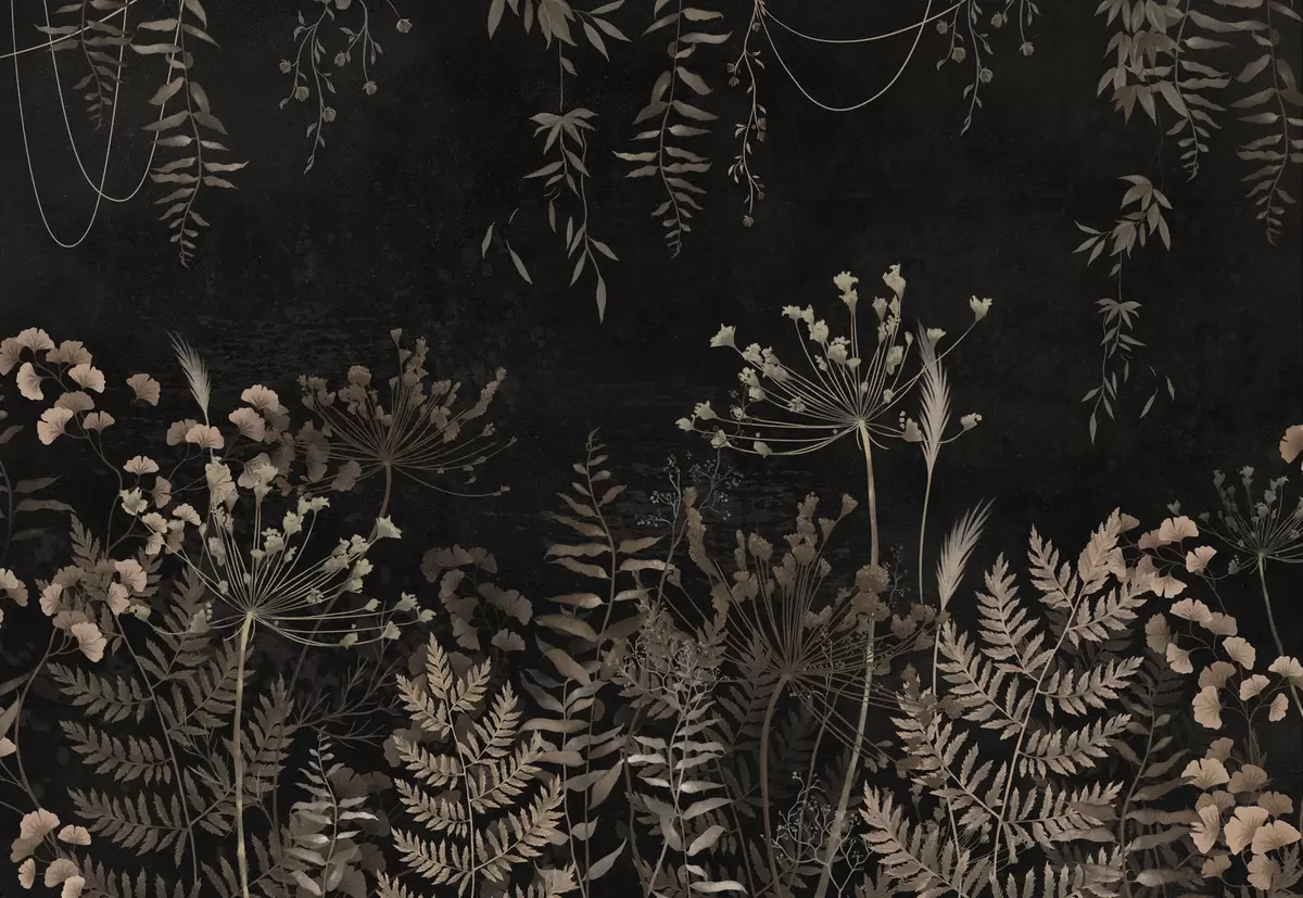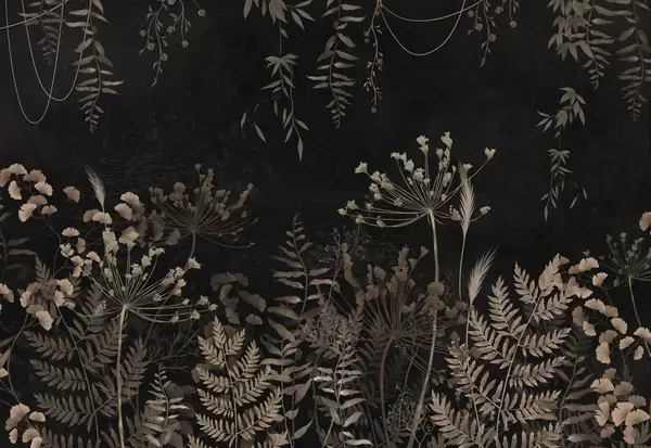 Zidne murale Tamni botanički uzorak s cvijećem i lišćem br. w05092
