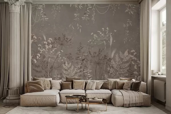 Zidne murale Lagani botanički uzorak s cvijećem i lišćem br. w05092v1