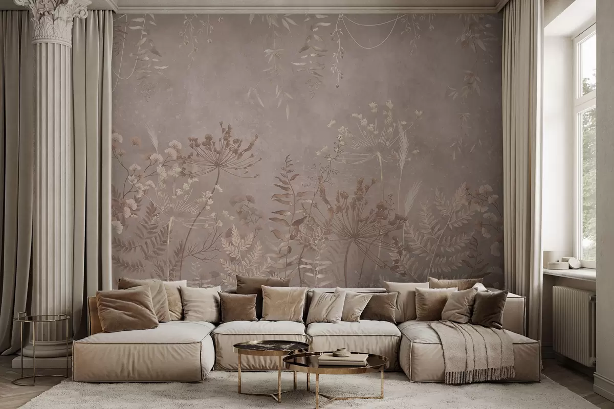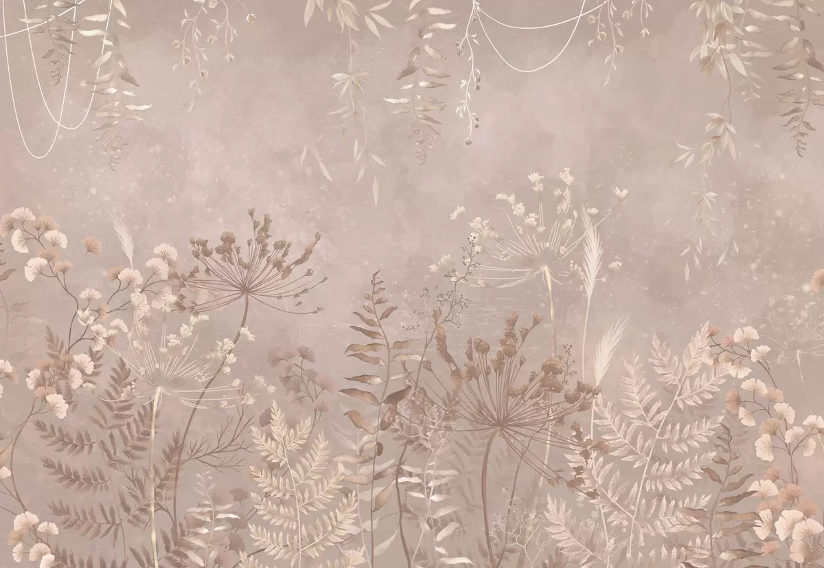 Zidne murale Meki bež botanički uzorak s divljim cvijećem br. w05092v2
