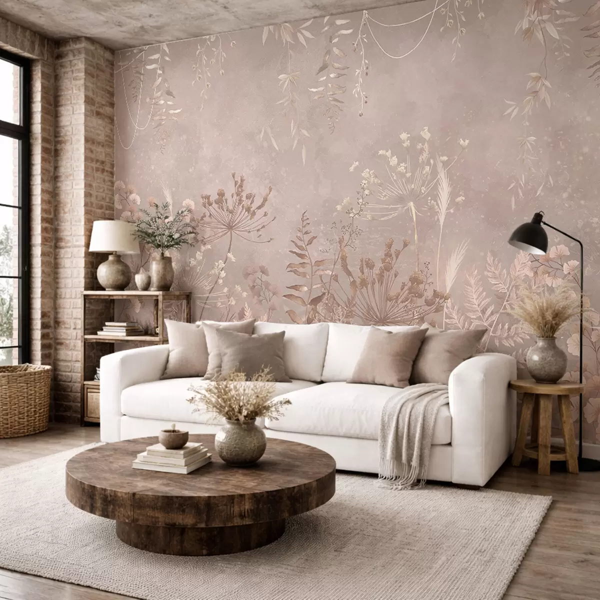 Zidne murale Meki bež botanički uzorak s divljim cvijećem br. w05092v2