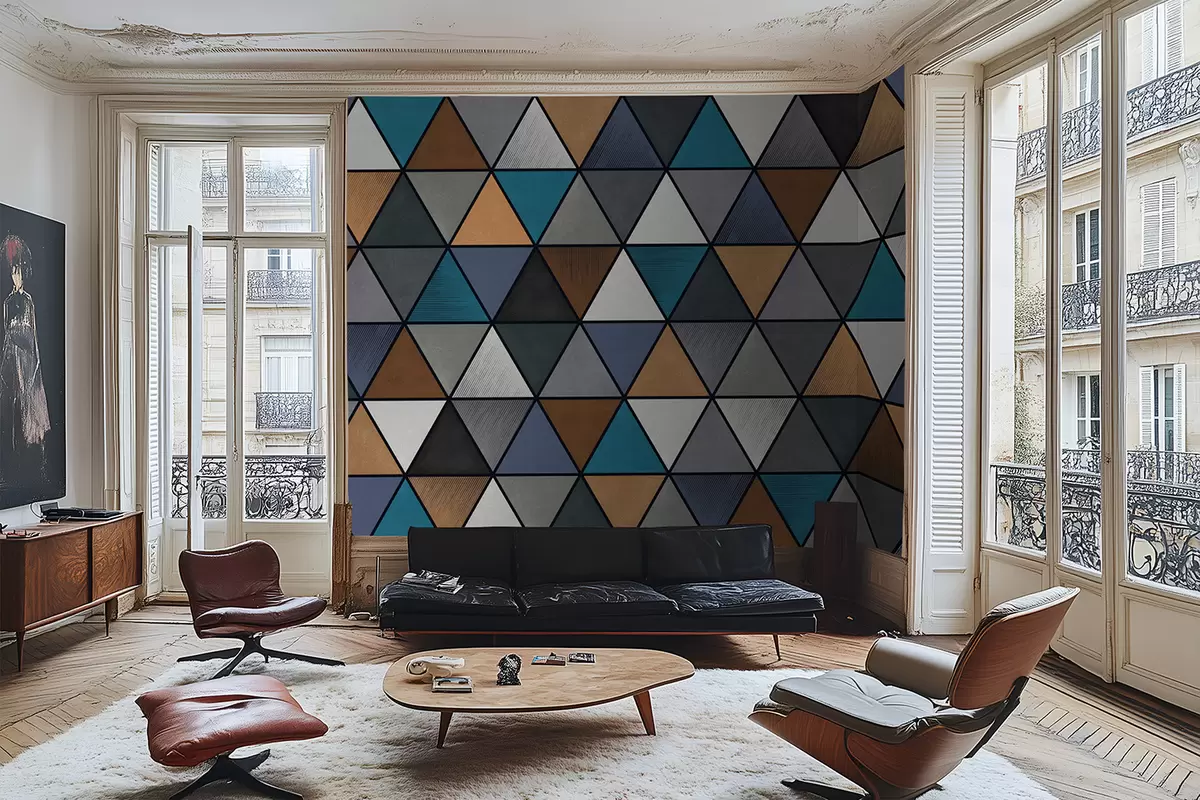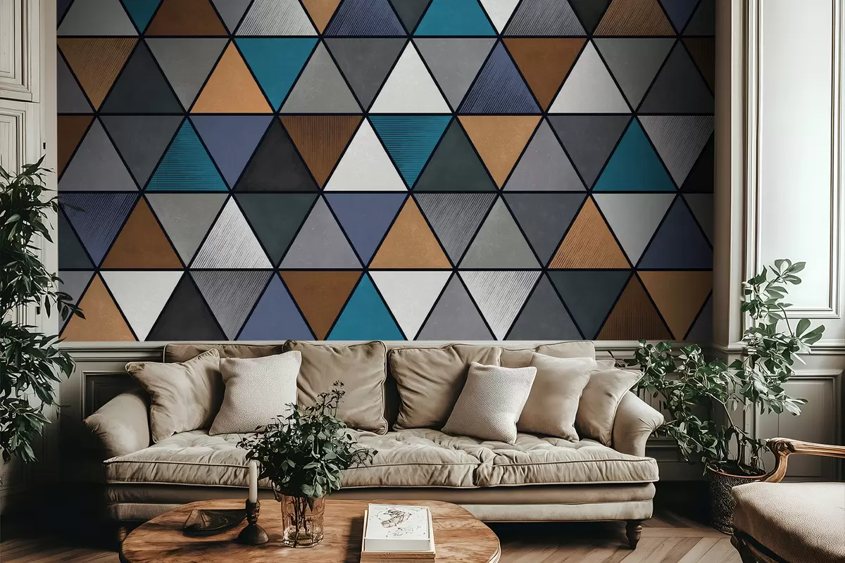 Zidne murale Trokutasti geometrijski uzorak u plavim i toplim tonovima br. w05095