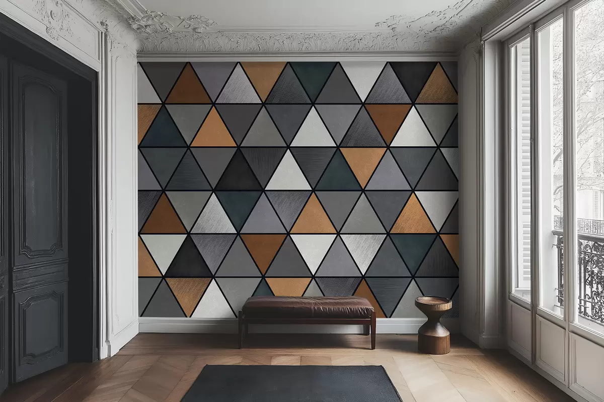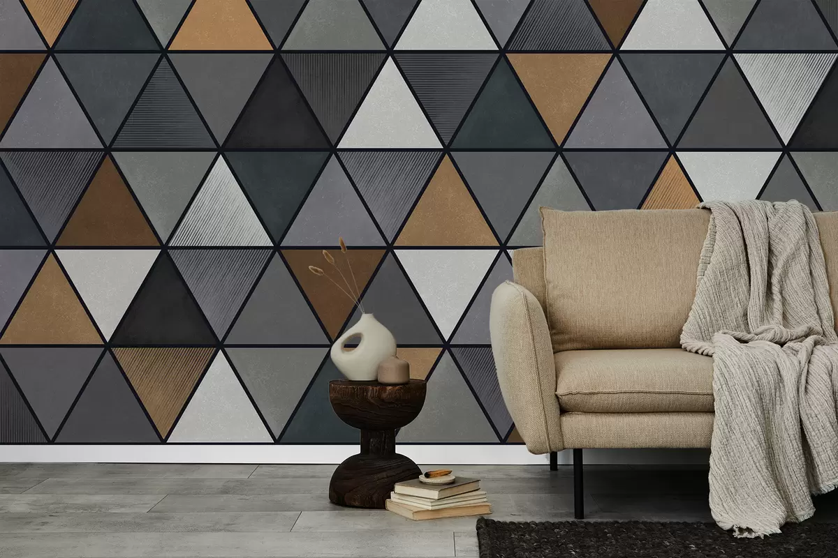 Zidne murale Trokutasti uzorak sa sivim i toplim nijansama br. w05095v1