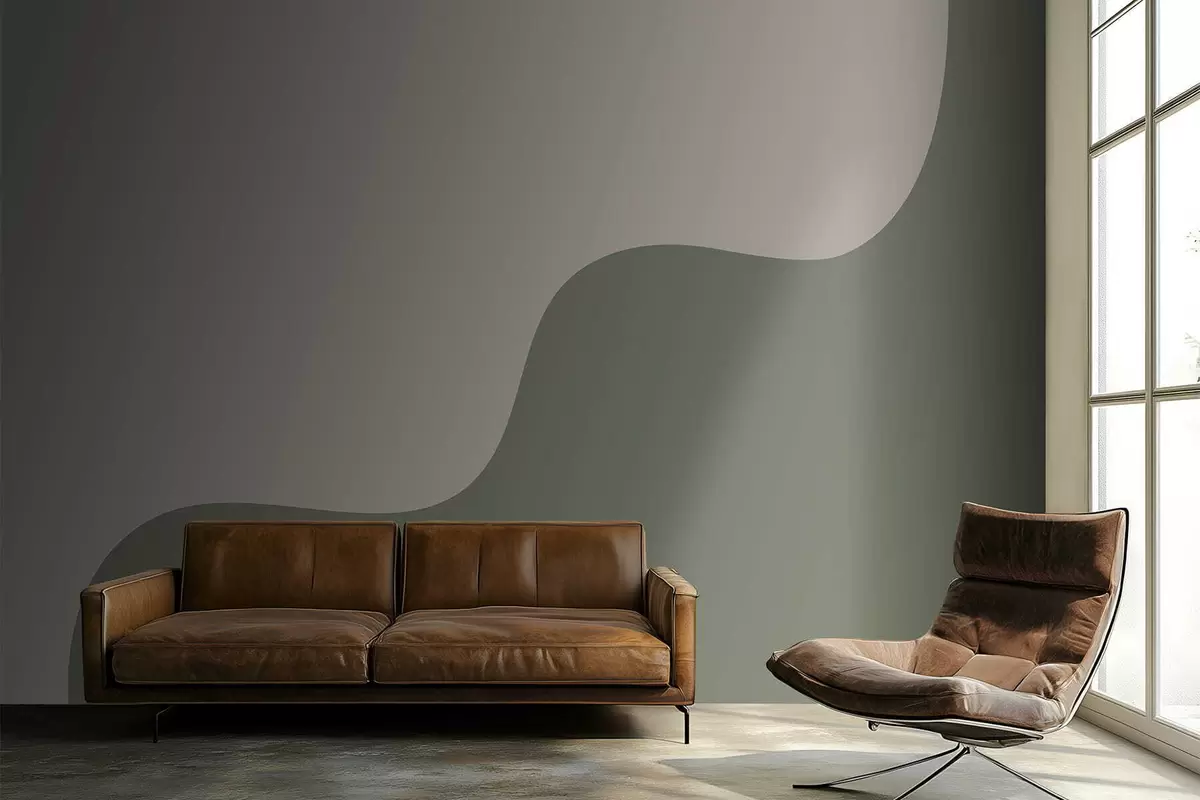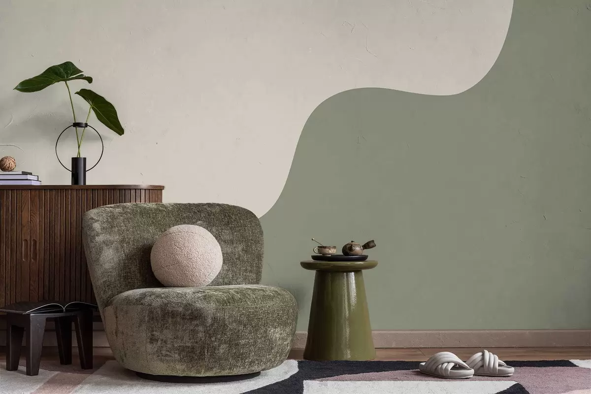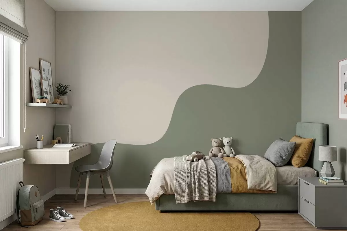 Zidne murale Glatki apstraktni oblici u svijetlim bež i zelenim nijansama br. w05097