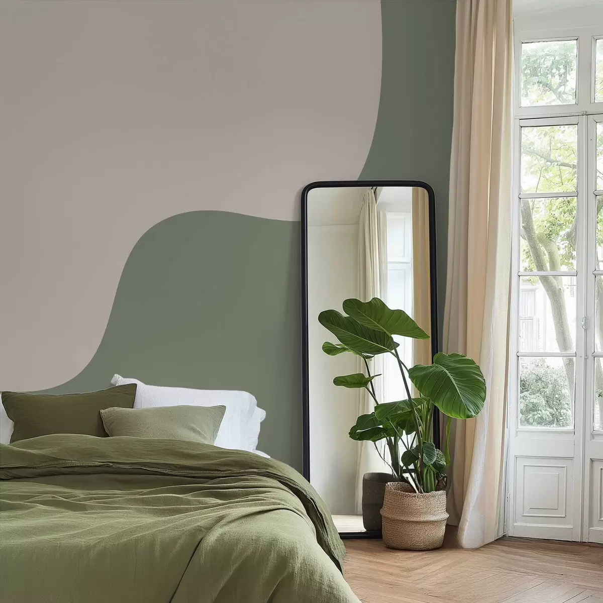Zidne murale Glatki apstraktni oblici u svijetlim bež i zelenim nijansama br. w05097