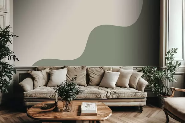 Zidne murale Glatki apstraktni oblici u svijetlim bež i zelenim nijansama br. w05097