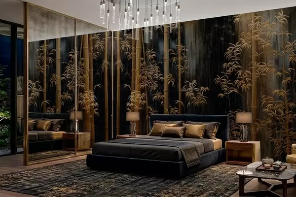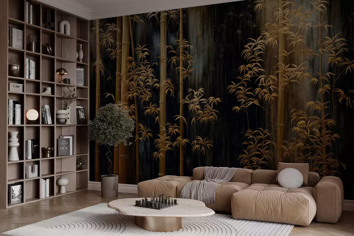 Zidne murale Tamni bambus na crnoj pozadini br. w05120