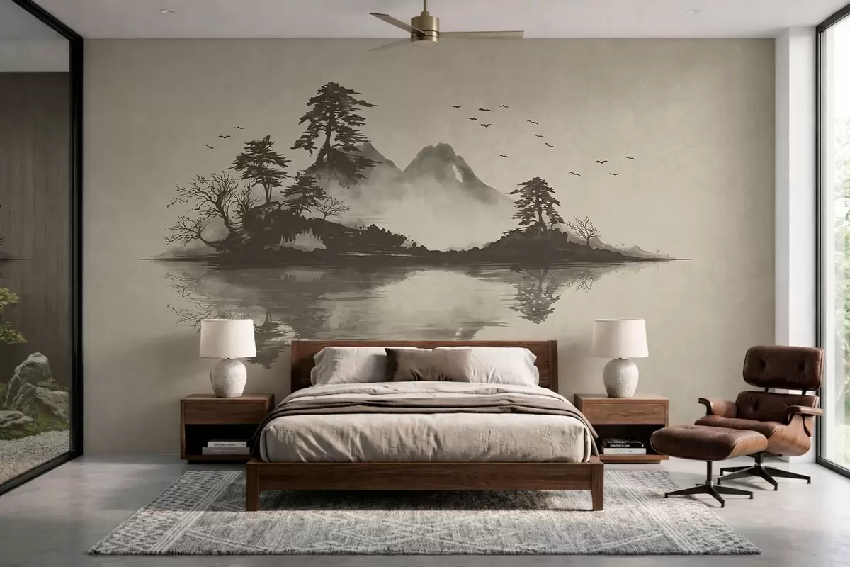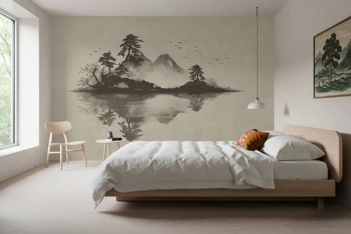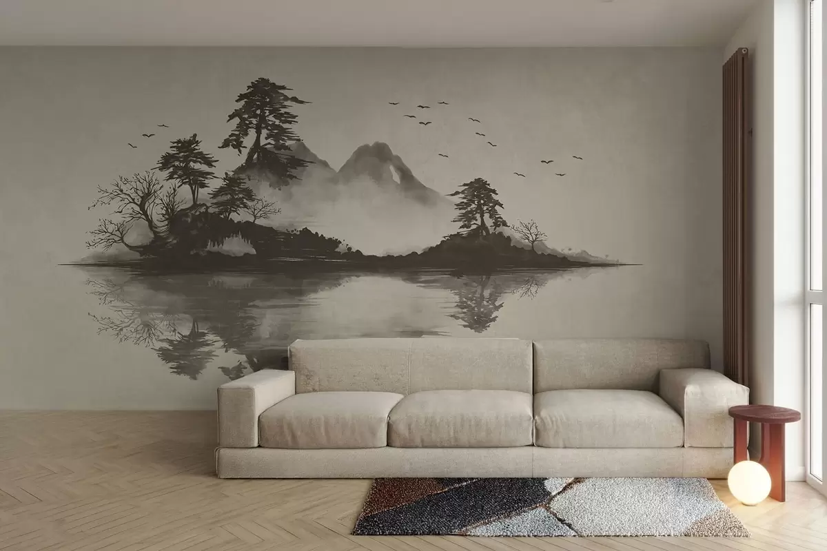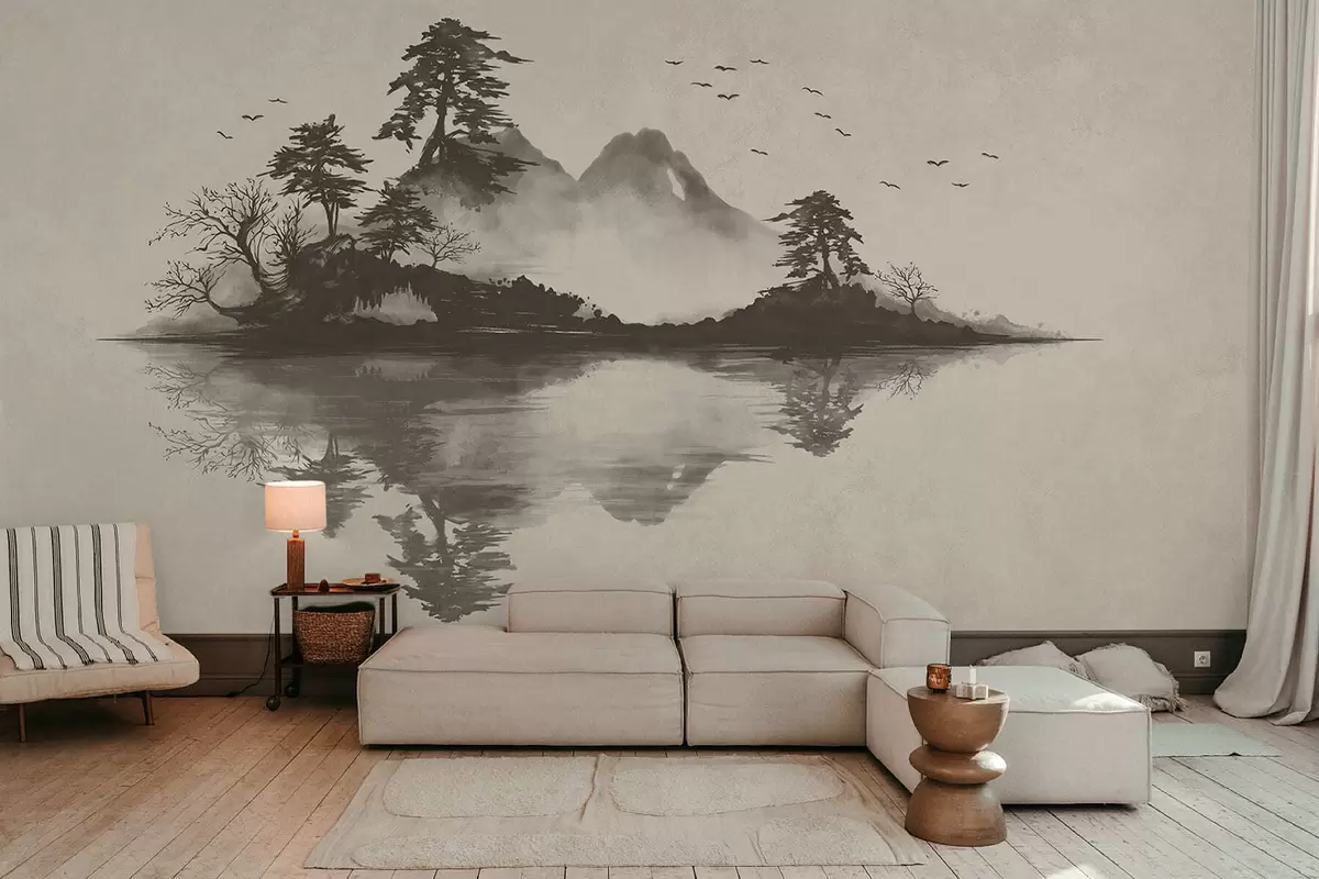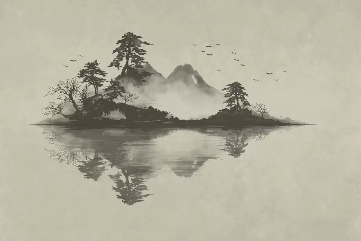 Zidne murale Planinski krajolik Sumi-e u mekim sivim tonovima br. w05124v1