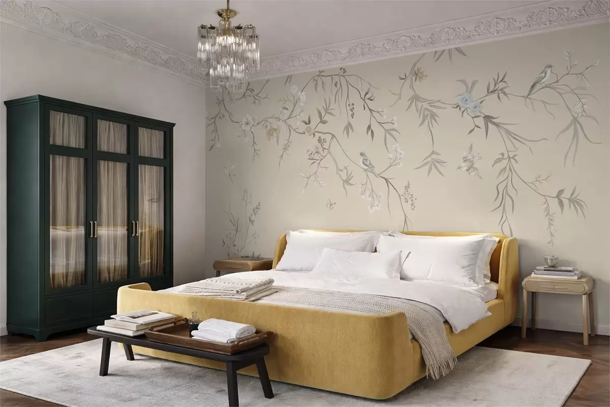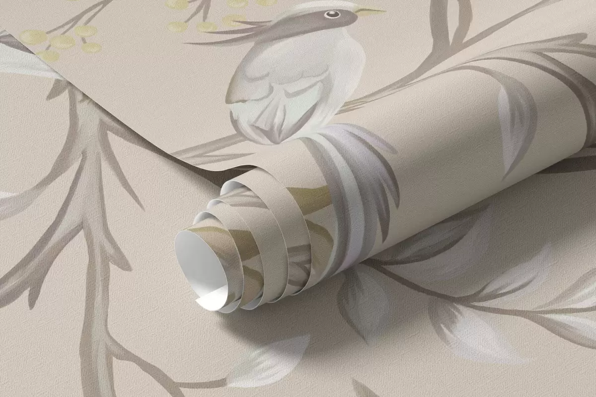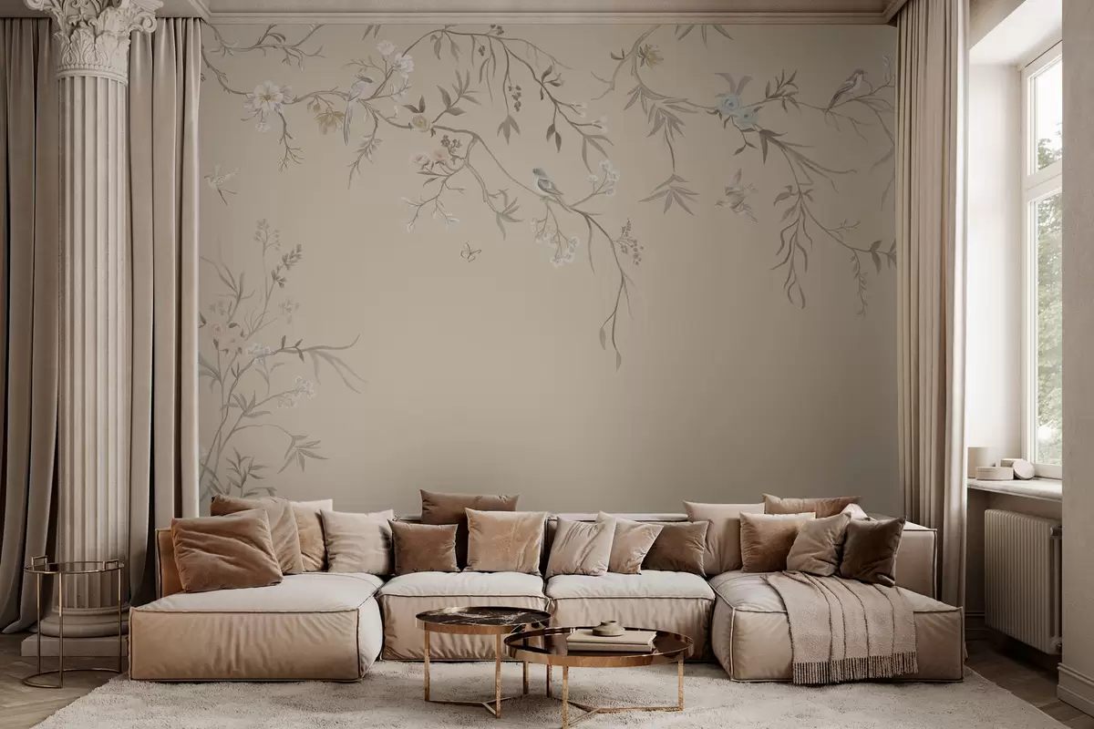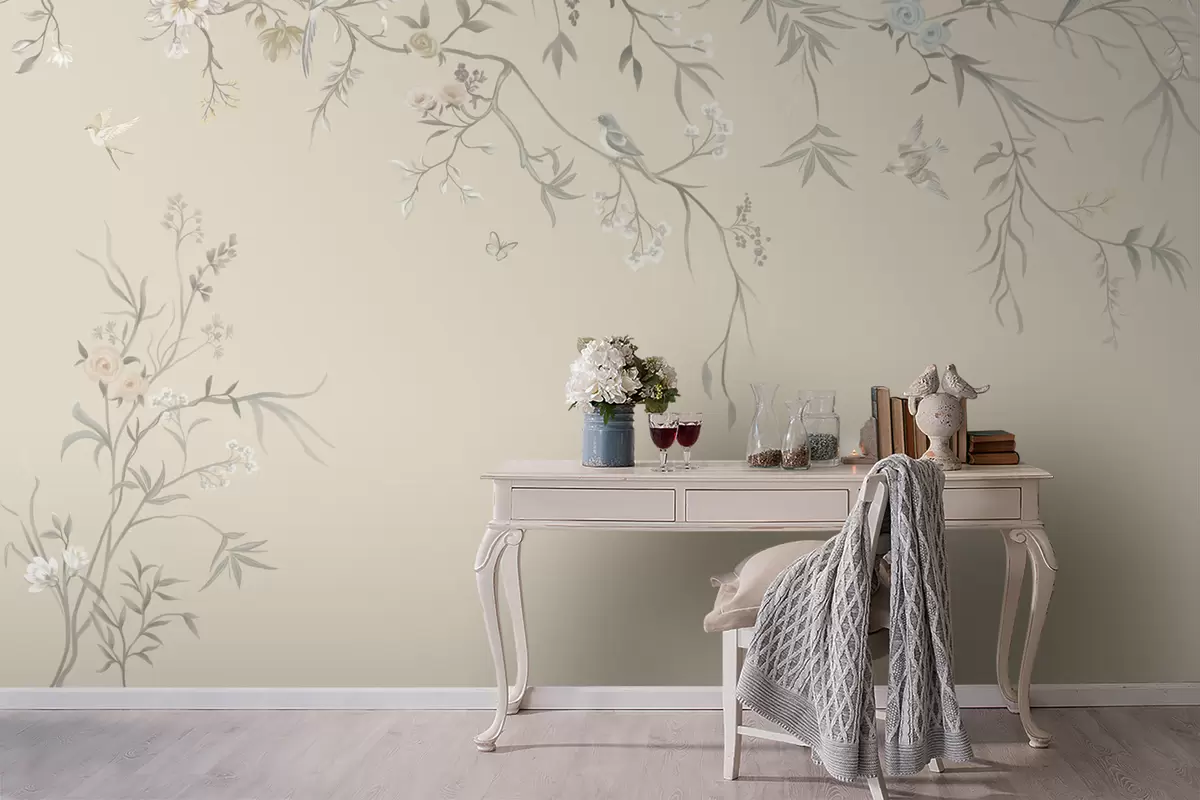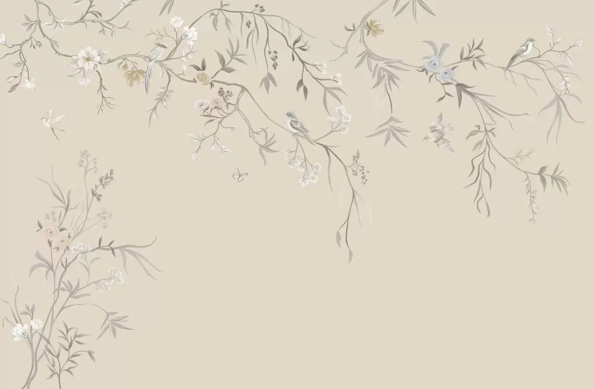 Zidne murale Svijetlo cvijeće i ptice na pastelnoj pozadini br. w05127v2