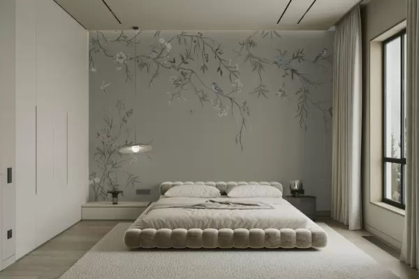 Zidne murale Cvjetni uzorak s pticama na hladnoj pozadini br. w05127v6