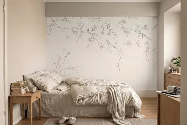 Zidne murale Cvjetne grane s pticama na svijetloj pozadini br. w05127v7