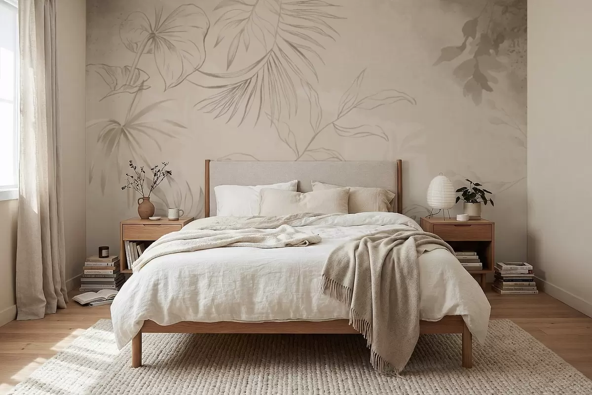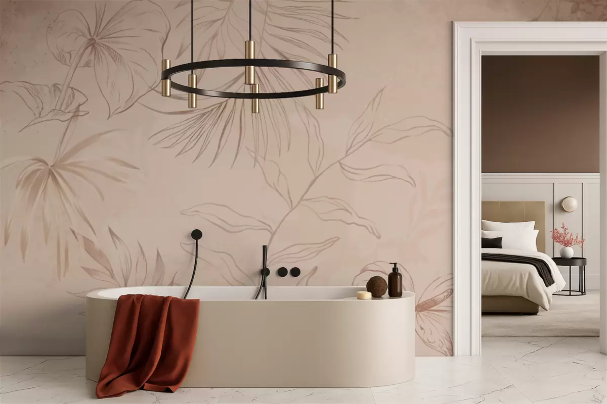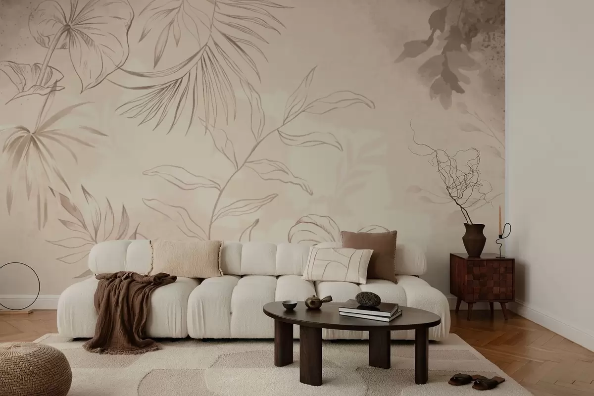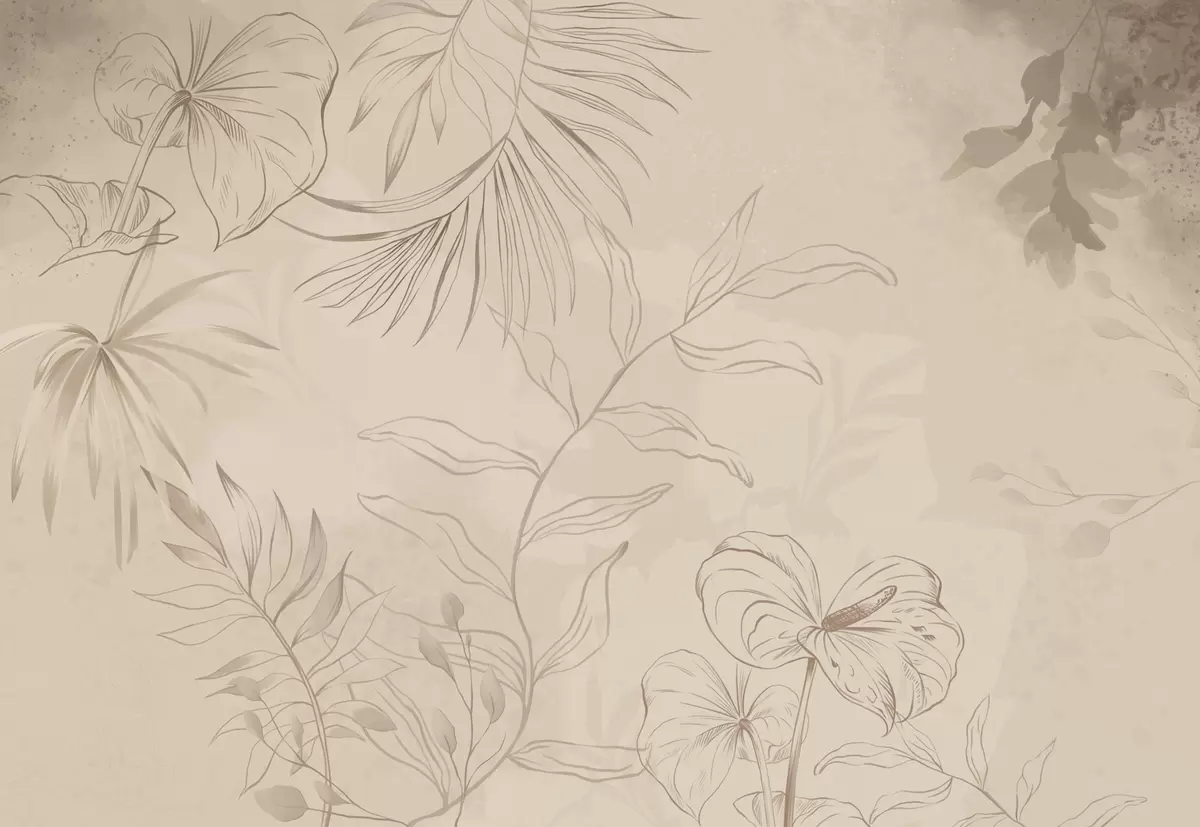 Zidne murale Linearne biljke na teksturiranoj bež pozadini br. w05128