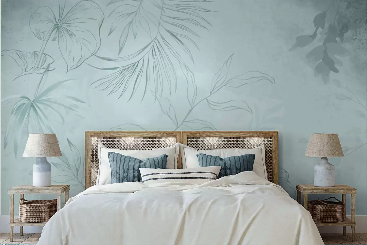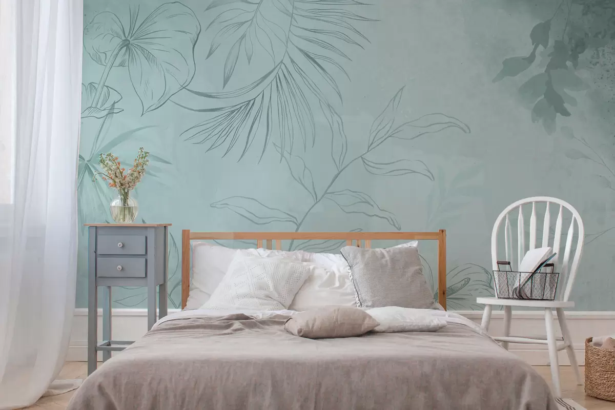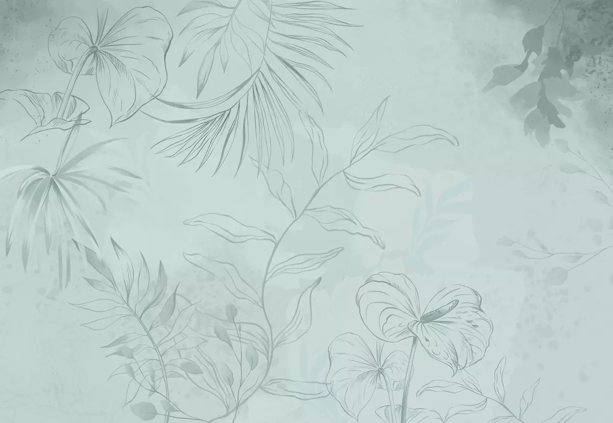 Zidne murale Linearne biljke na mekoj zelenkastoj pozadini br. w05128v1