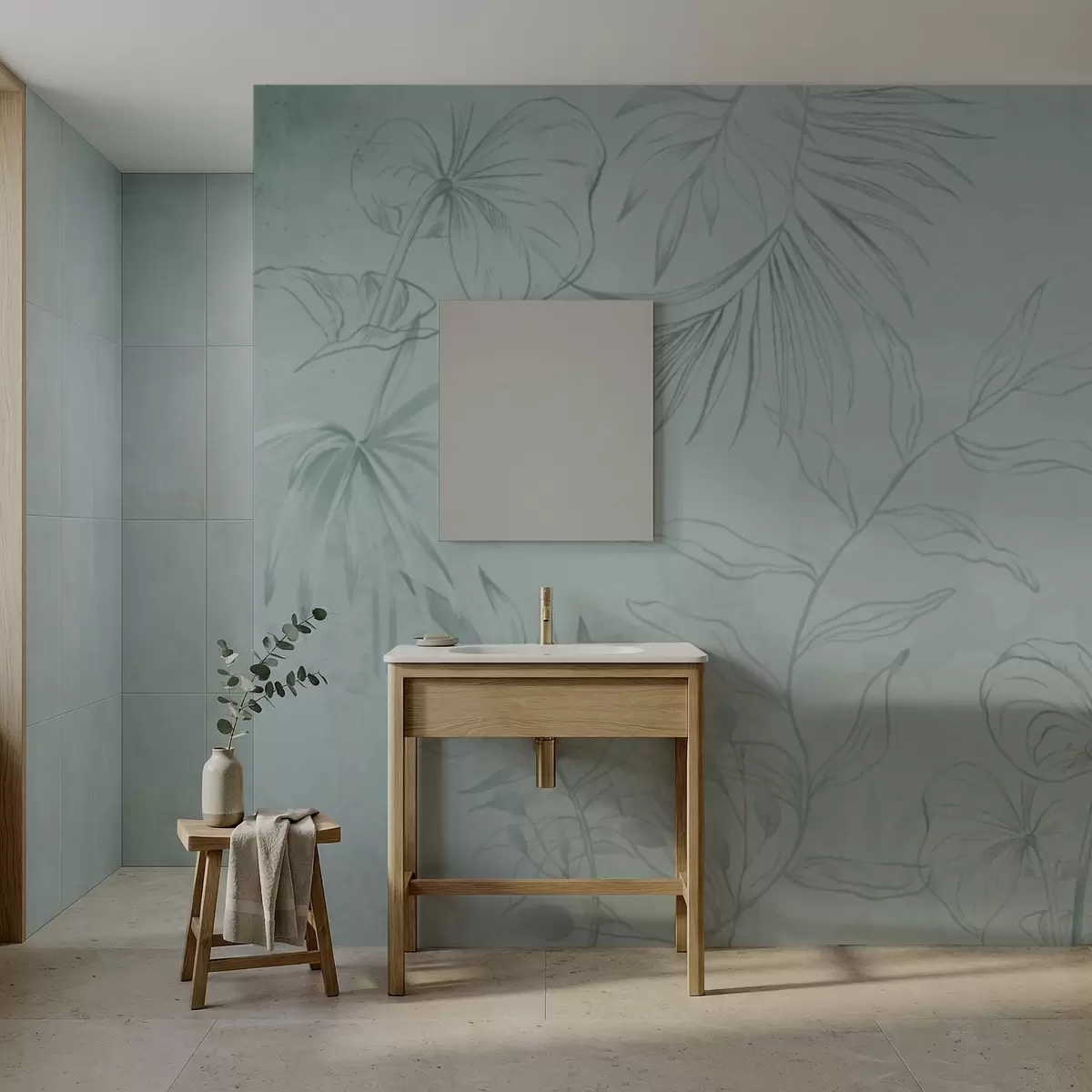 zidne murale Linearne biljke na mekoj zelenkastoj pozadini w05128v1
