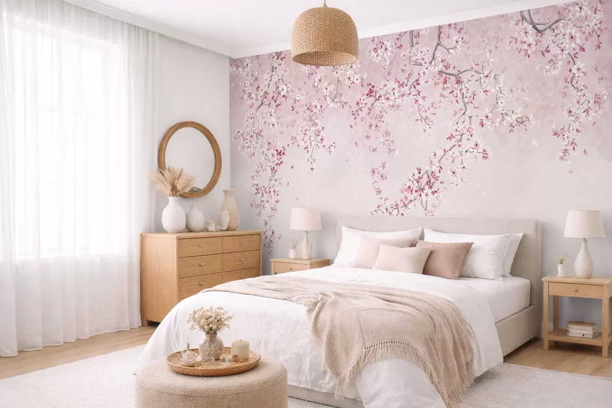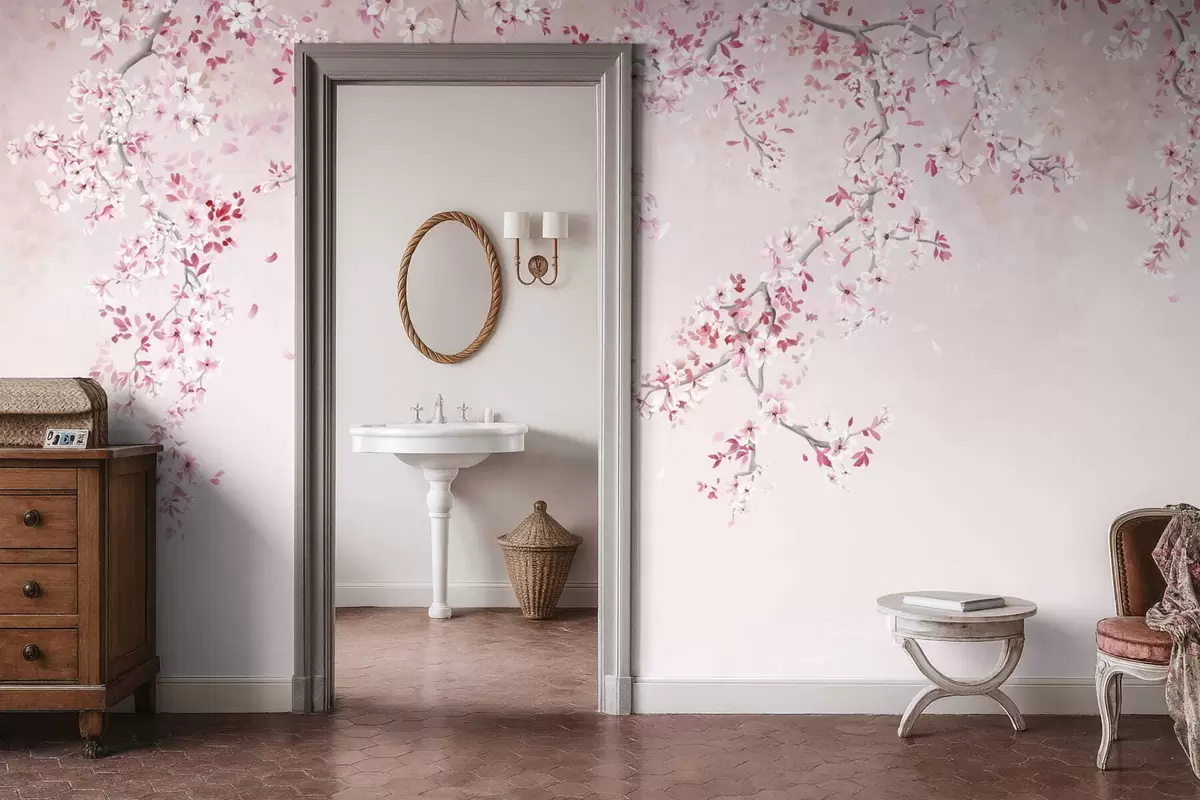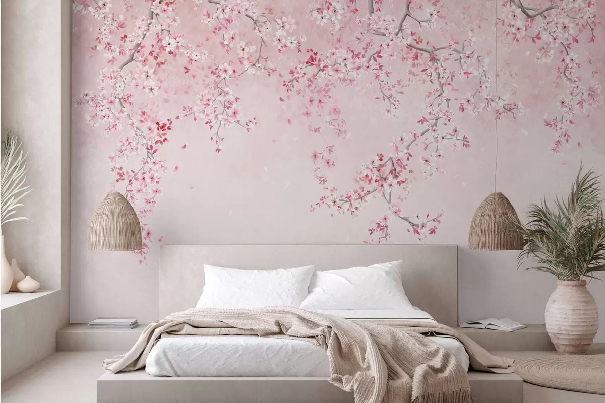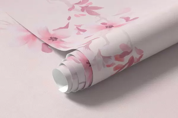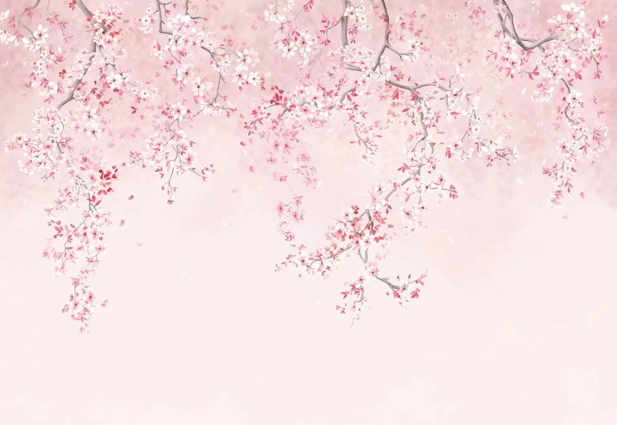Zidne murale Grane s ružičastim cvjetovima na mekoj pastelnoj pozadini br. w05129v1