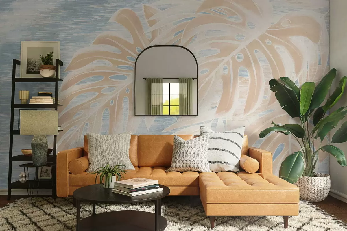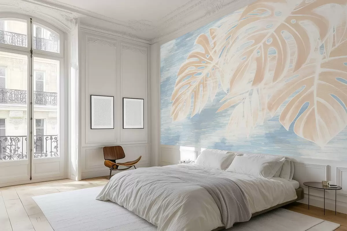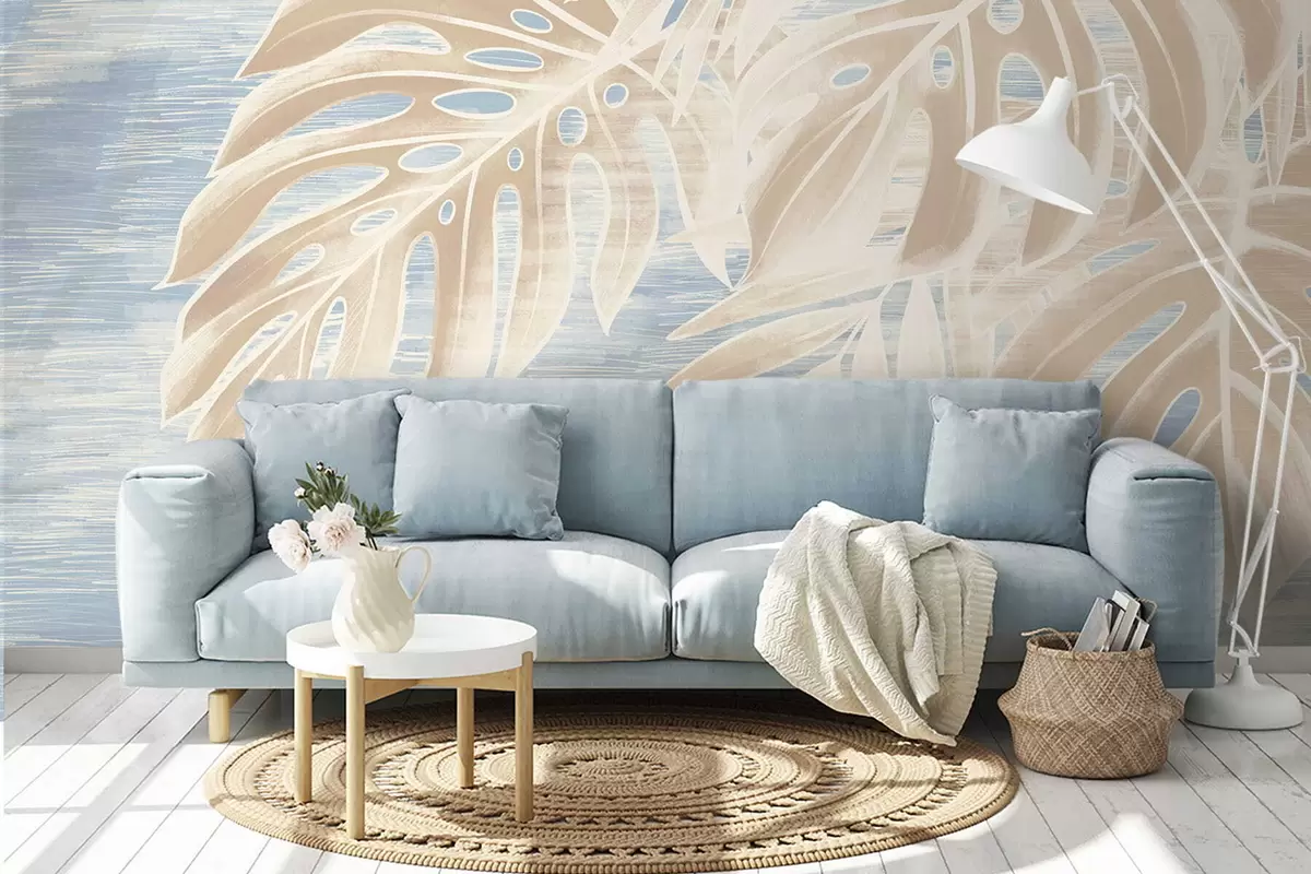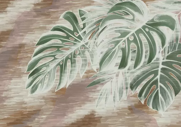 Zidne murale Apstraktno lišće u toplim bež tonovima na svijetloj pozadini br. w05130