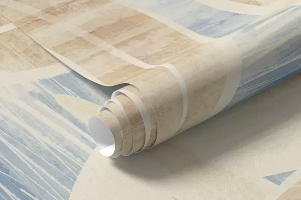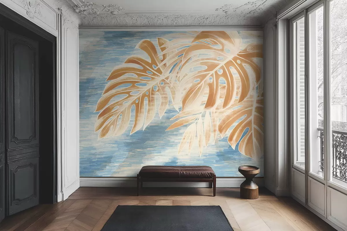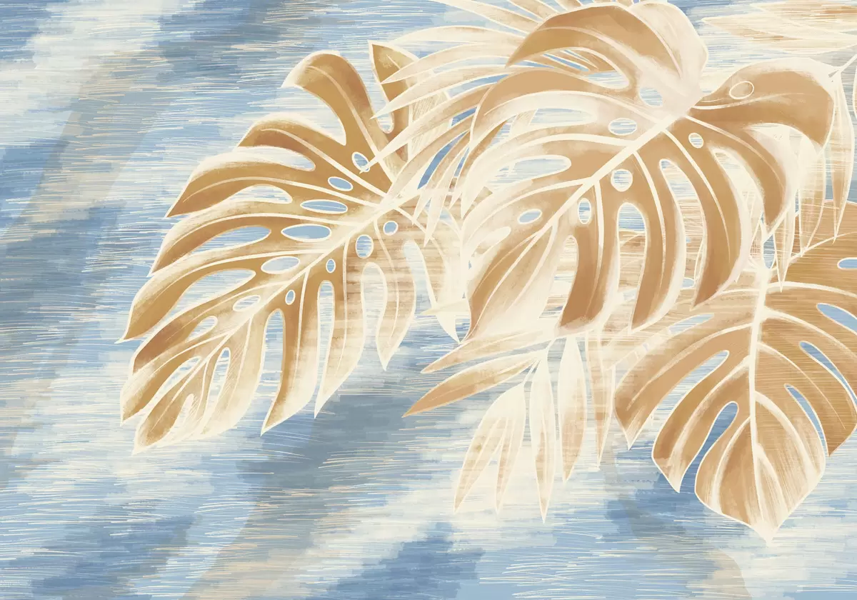 Zidne murale Lišće u svijetlim pješčanim tonovima na plavoj pozadini br. w05130v1