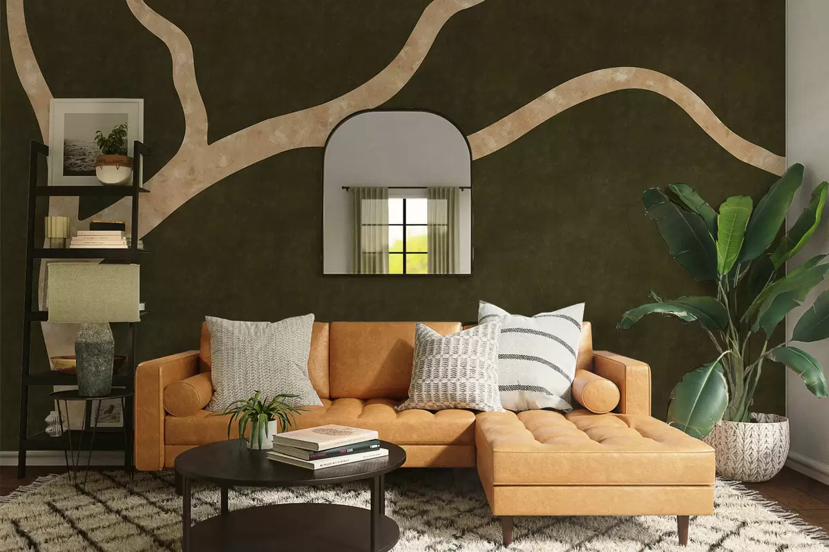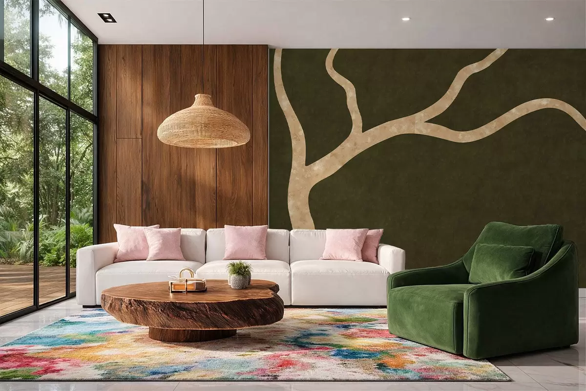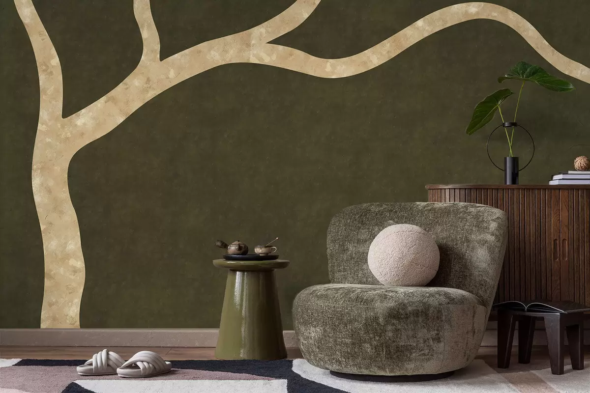 Zidne murale Svijetla grana na maslinovoj pozadini br. w05144v2