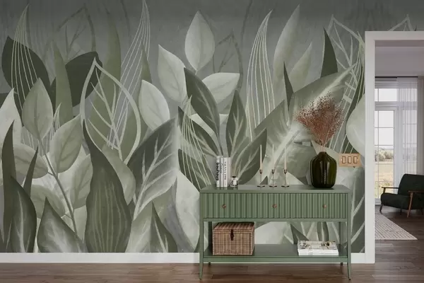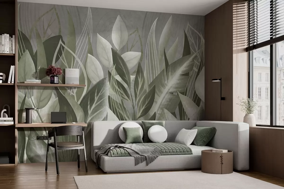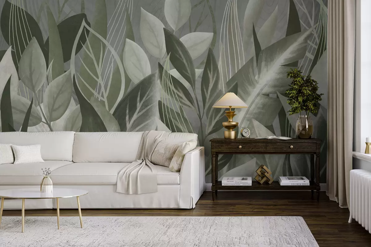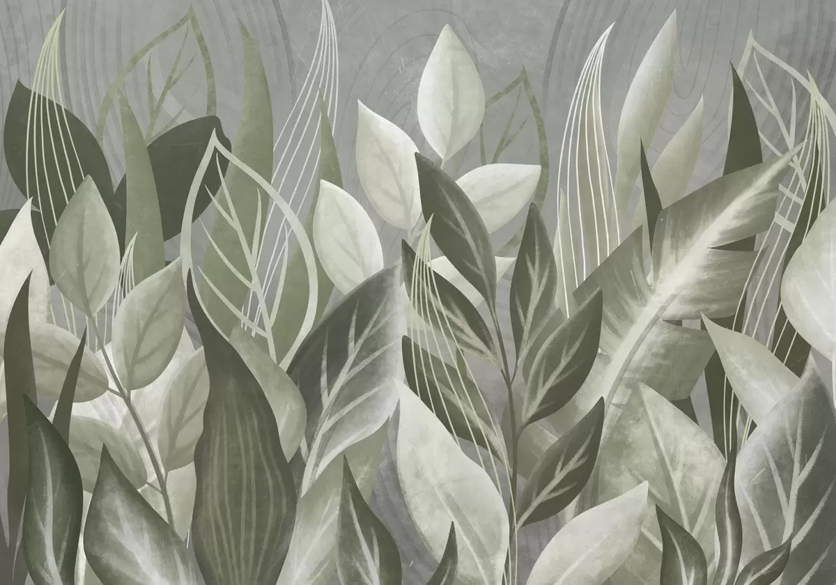 Zidne murale Apstraktno lišće u sivo-zelenim nijansama br. w05148v1