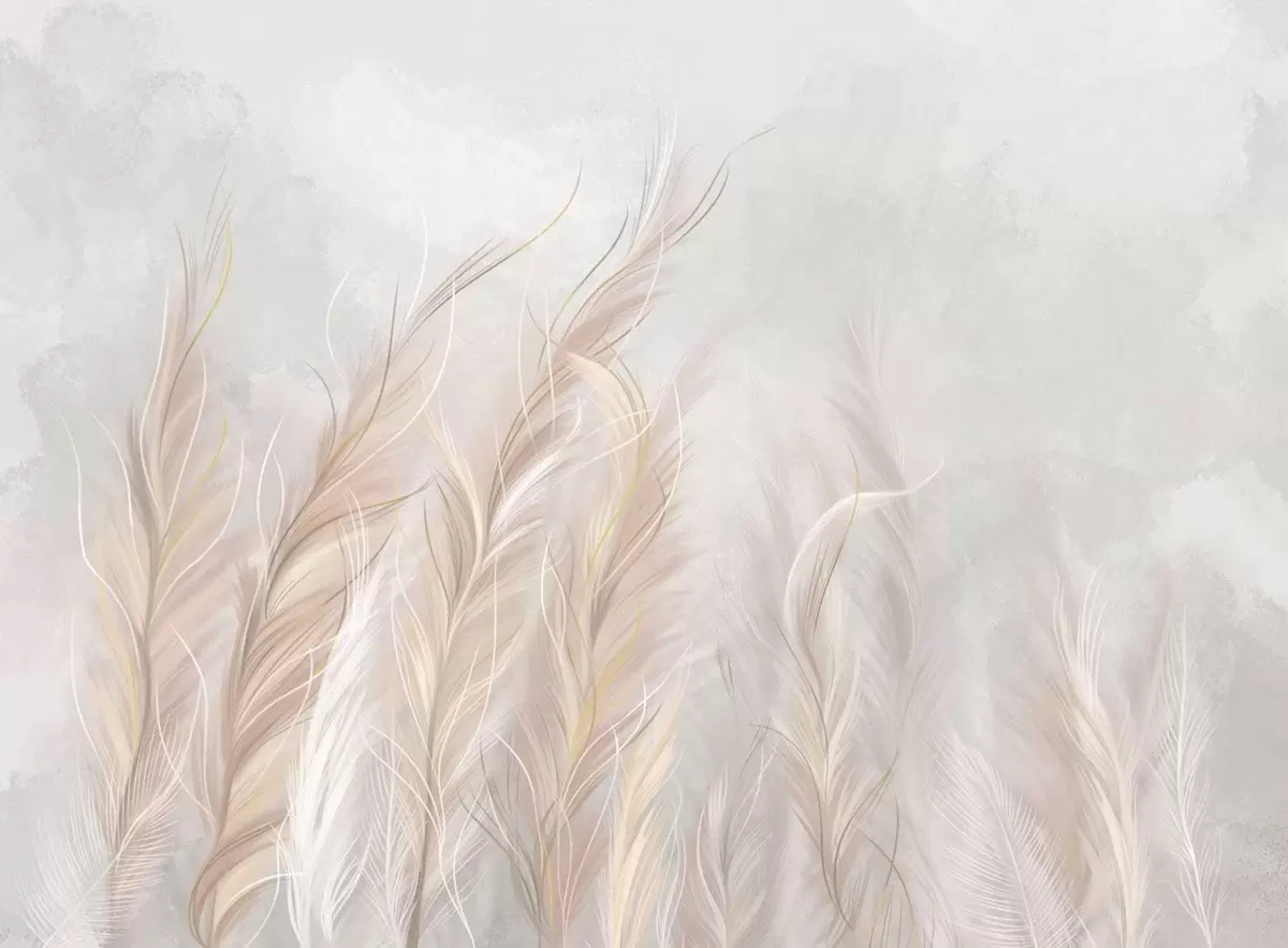 Zidne murale Meko apstraktno perje u svijetlim neutralnim tonovima br. w05153