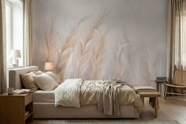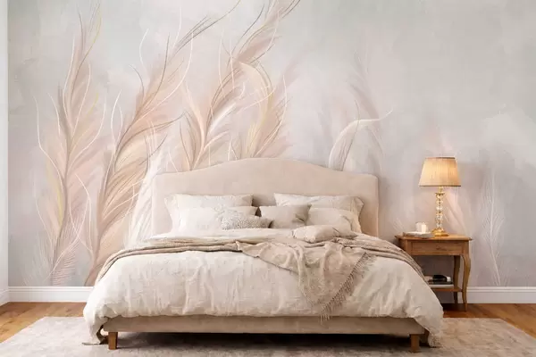 Zidne murale Meko apstraktno perje u svijetlim neutralnim tonovima br. w05153