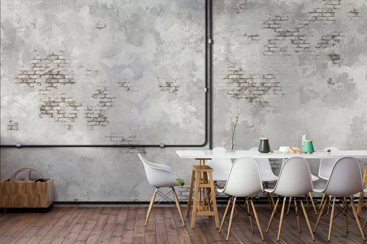 Zidne murale Grunge tekstura žbuke s izloženim fragmentima opeke br. w05161