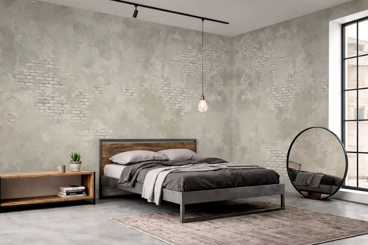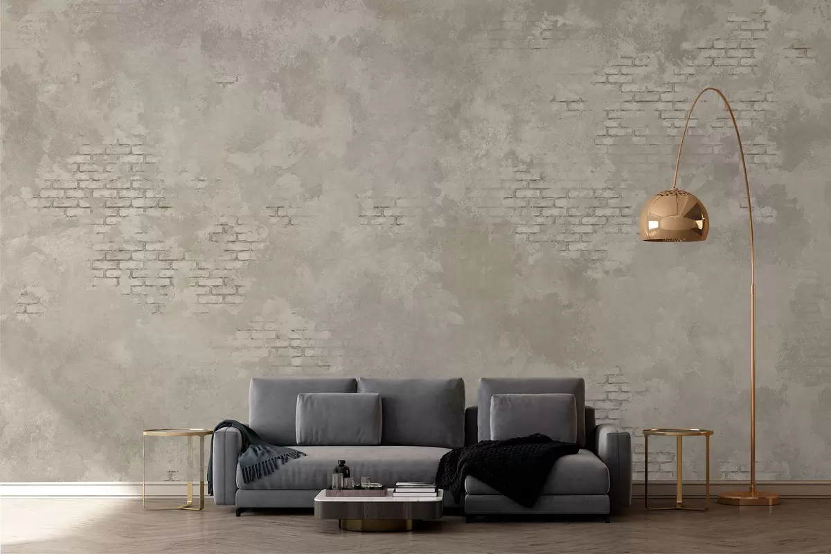 Zidne murale Grunge svijetla žbuka s vidljivim dijelovima opeke br. w05161v1