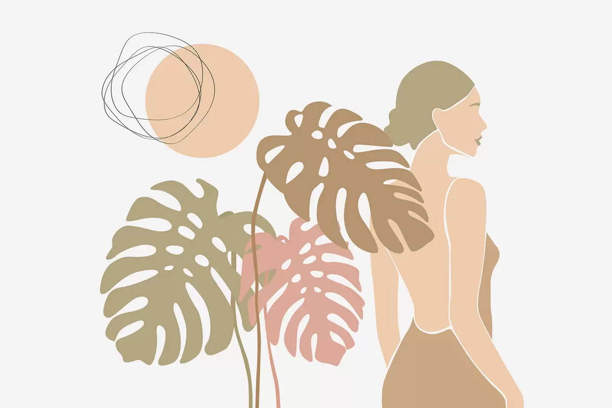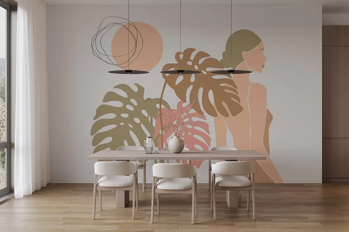 Zidne murale Silueta žene u blizini tropskog lišća br. w05192v1